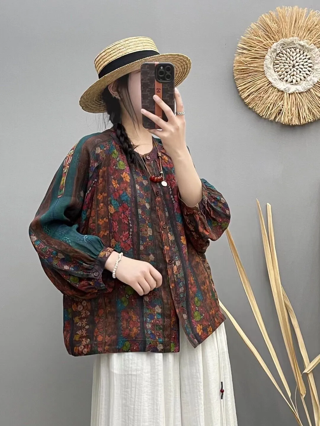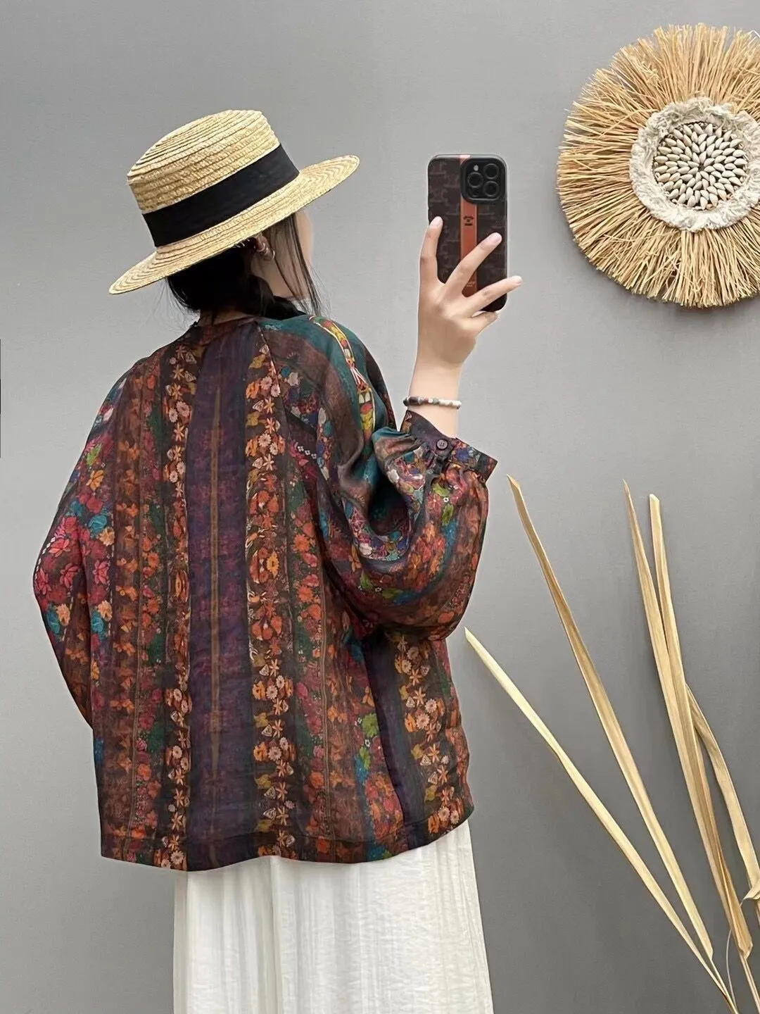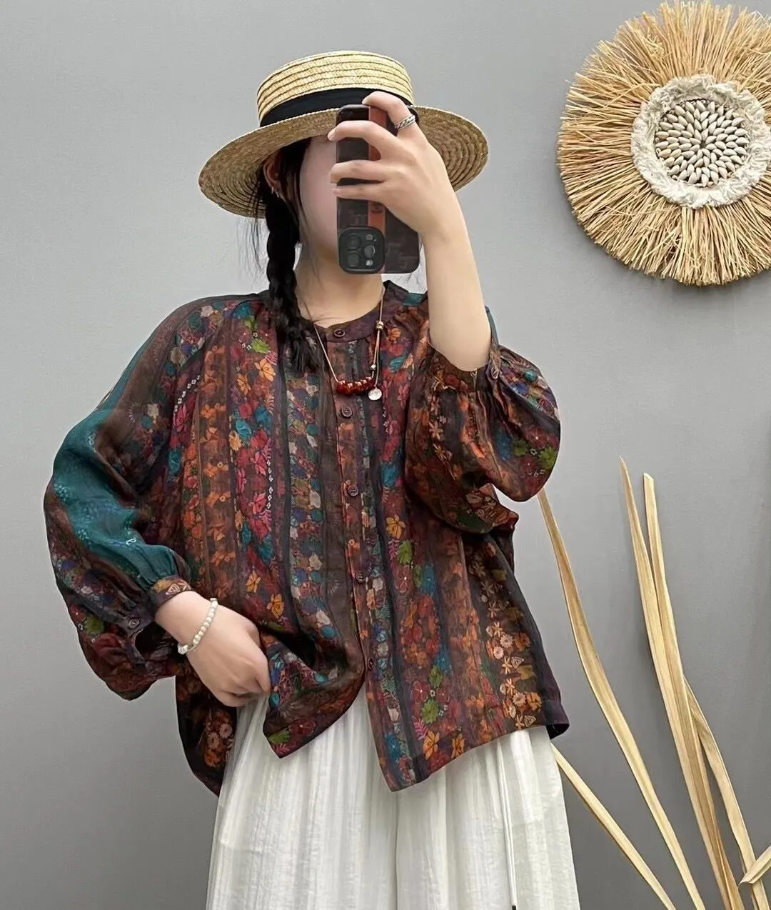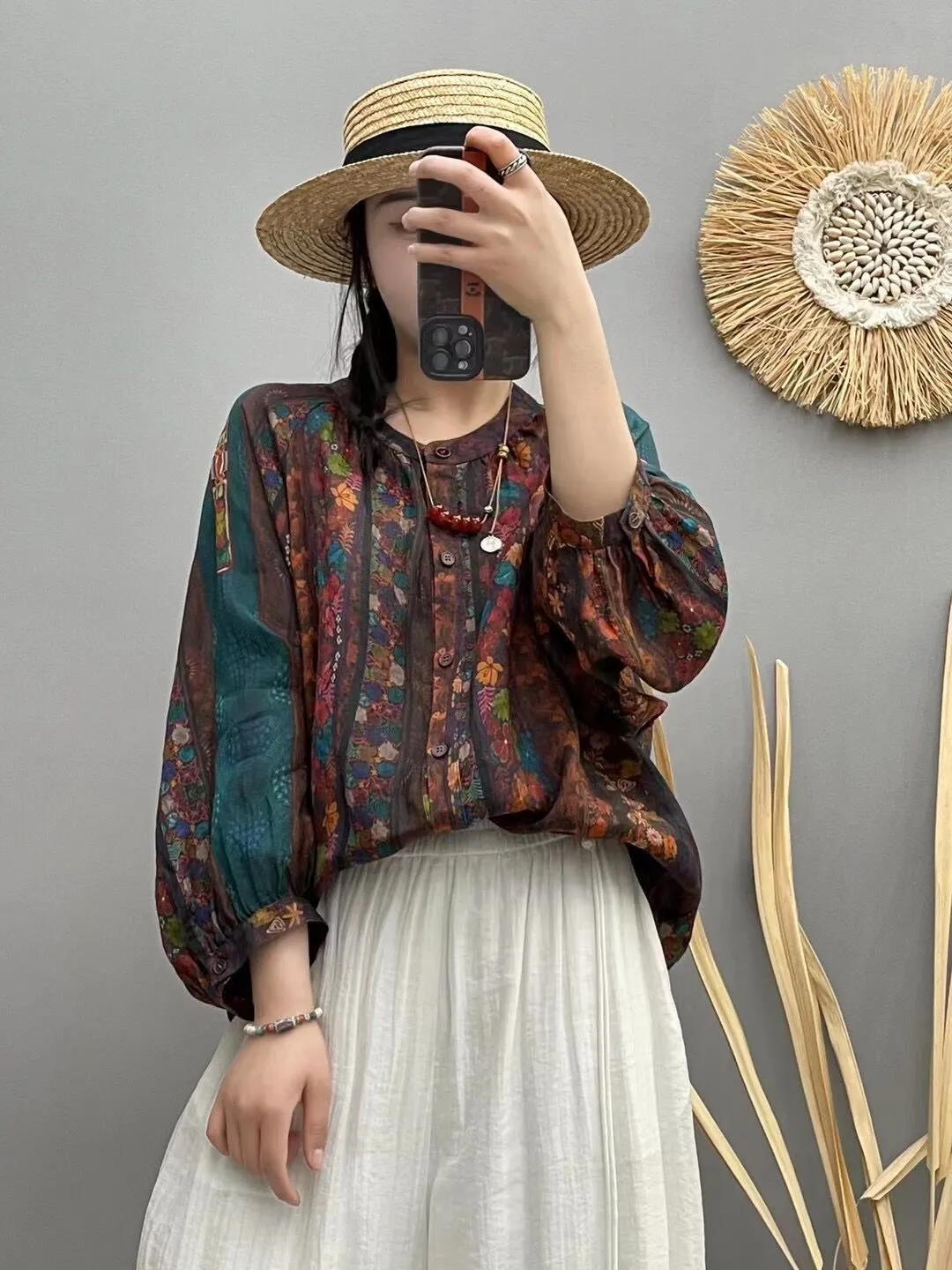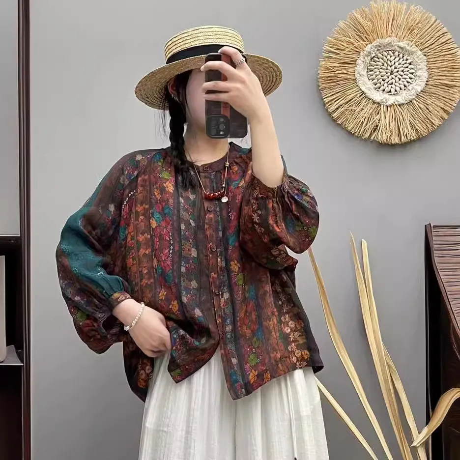衣都精品- 新款民族風插肩袖數位印花寬鬆上衣