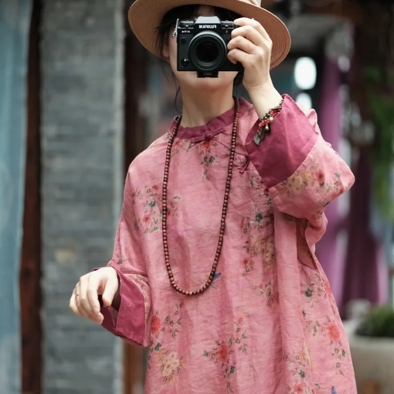 衣都精品- 新款數位印花寬鬆對襟文藝上衣