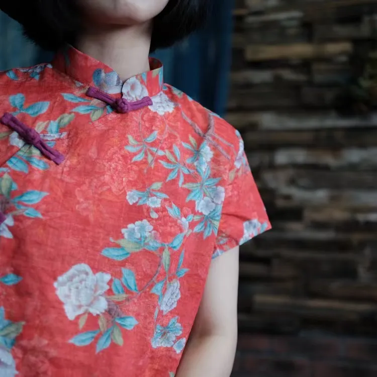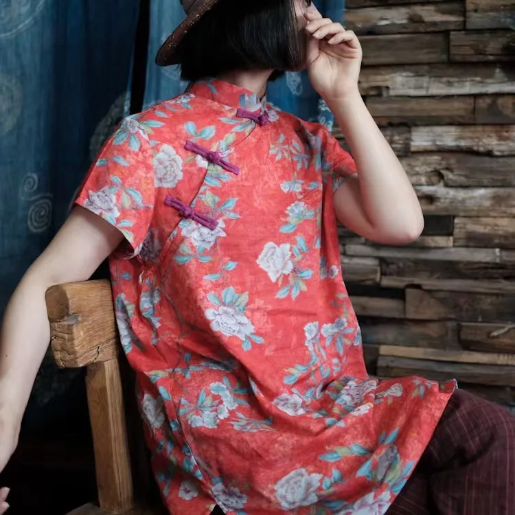 衣都精品- 新款復古立領斜襟盤扣短袖上衣