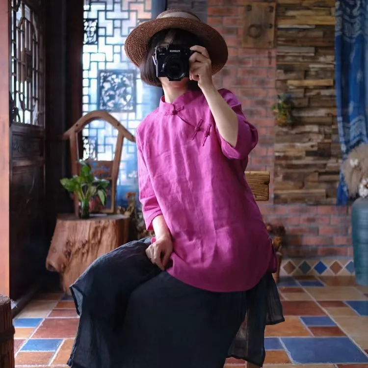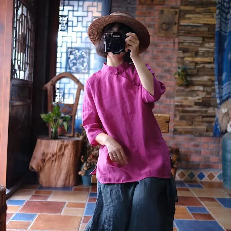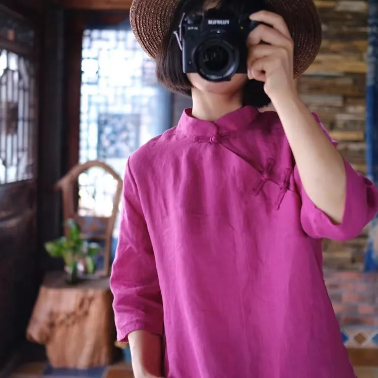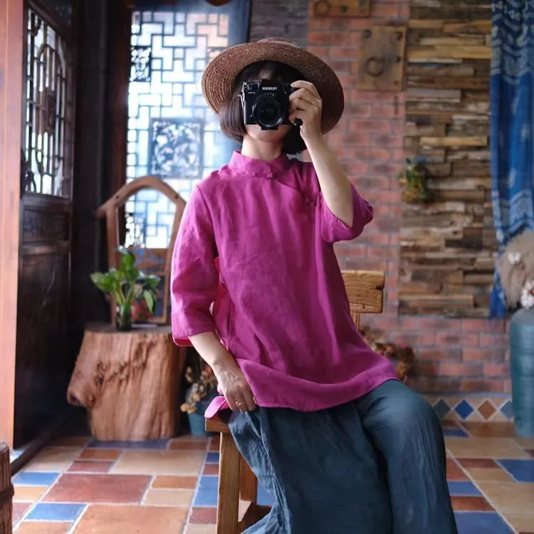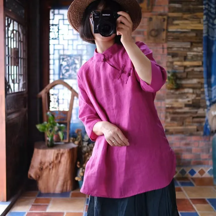 衣都精品- 新款復古改良立領盤扣水洗上衣