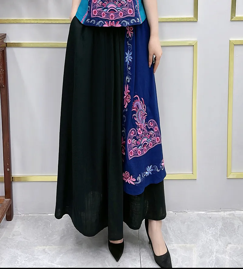 衣都精品- 新款民族風拼接繡花大擺鬆緊腰半身裙