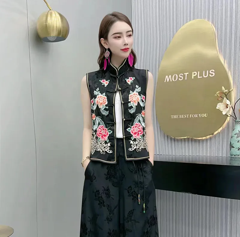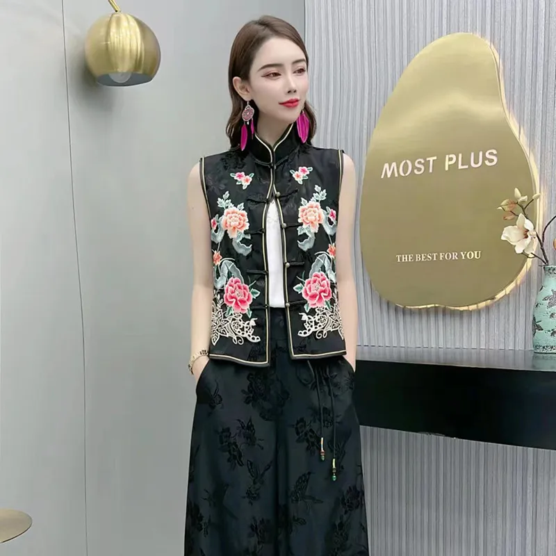 衣都精品- 新款民族風繡花短款輕薄透氣馬夾