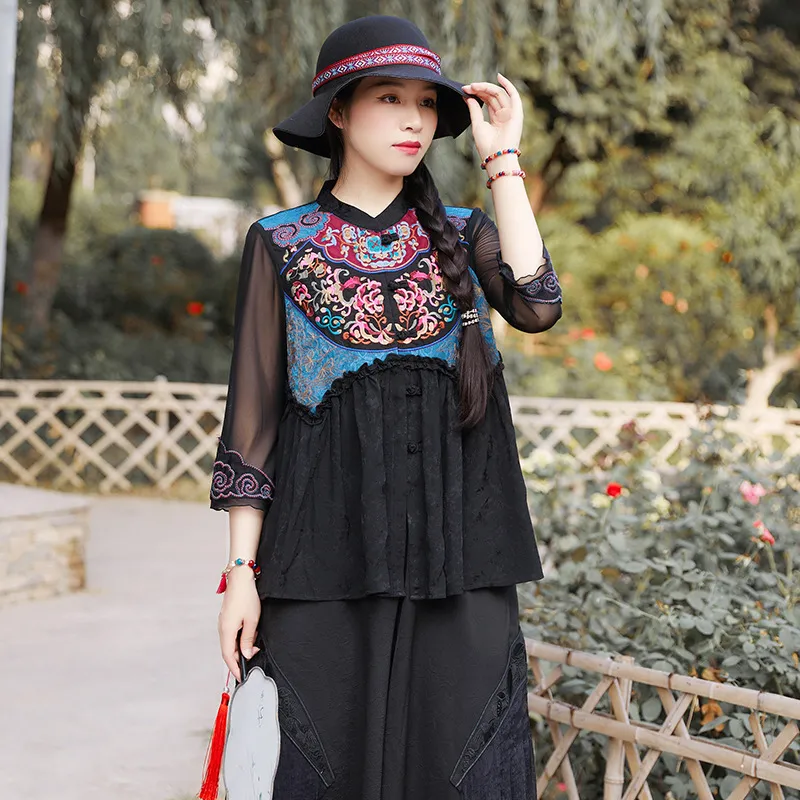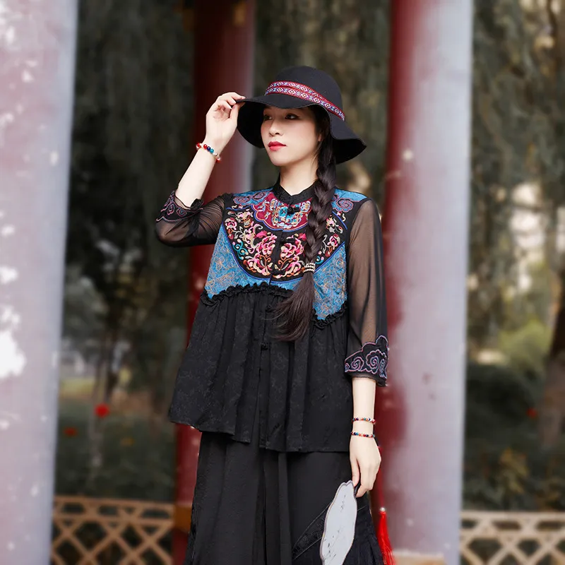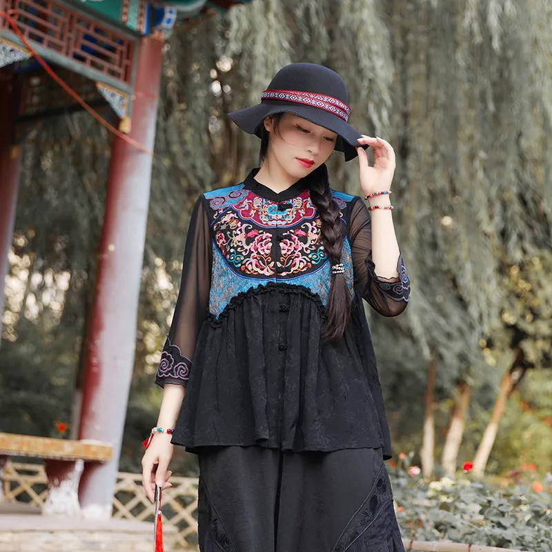 衣都精品- 新款民族風繡花中式修身刺繡短款上衣
