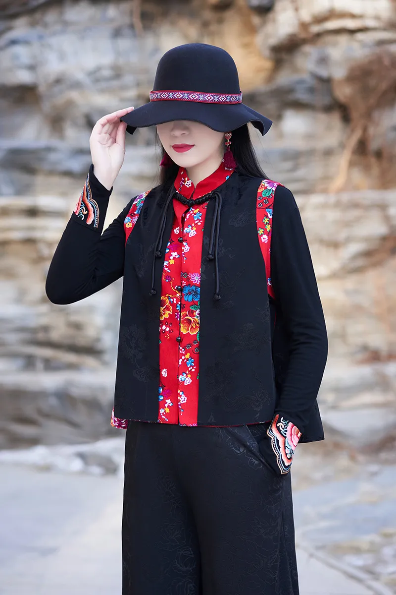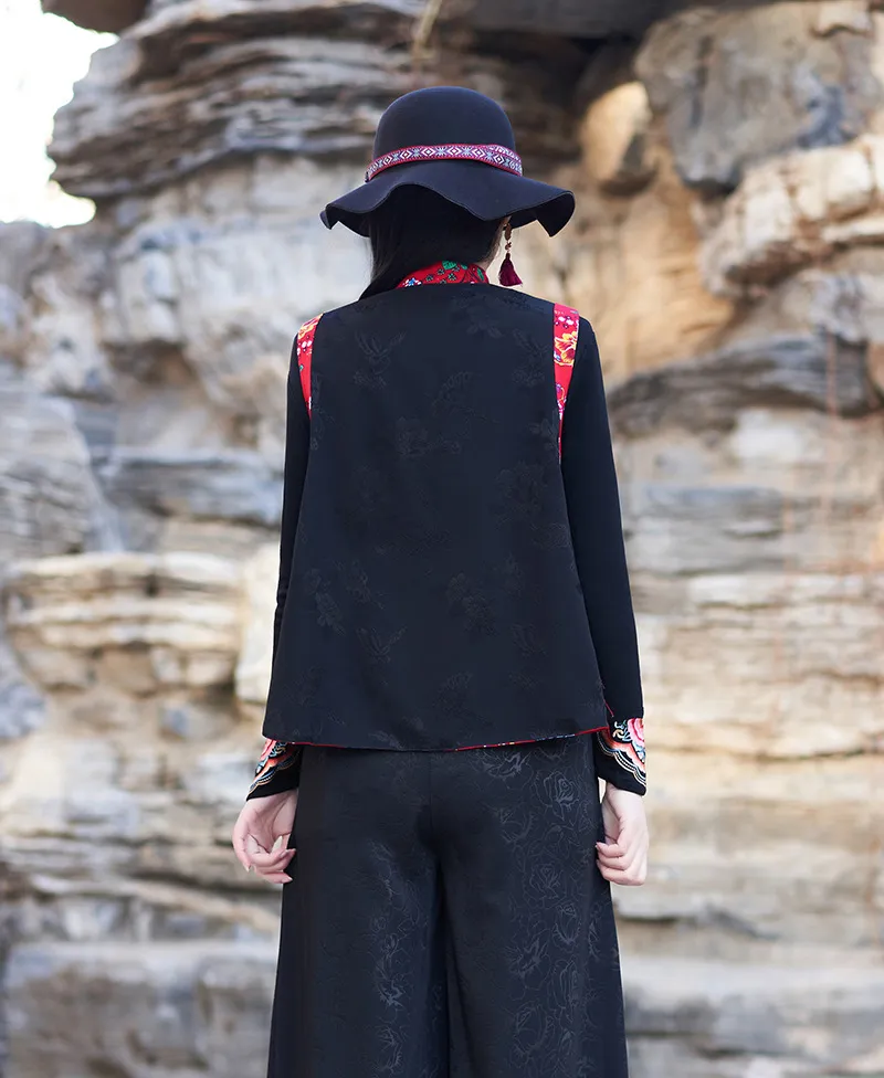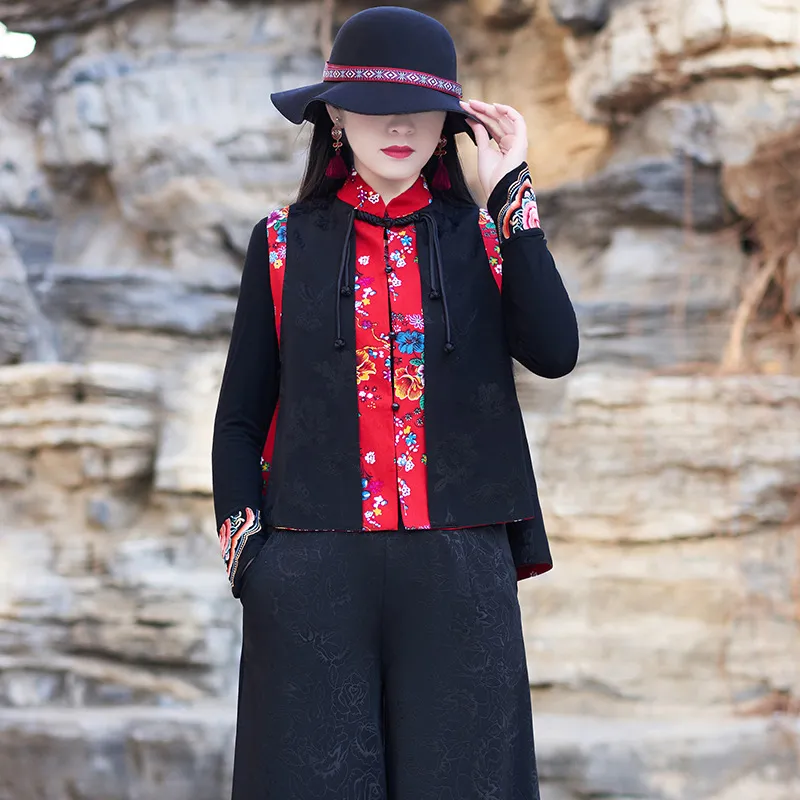 衣都精品- 新款民族風印花刺繡立領短款兩面穿馬甲