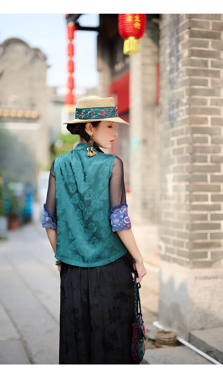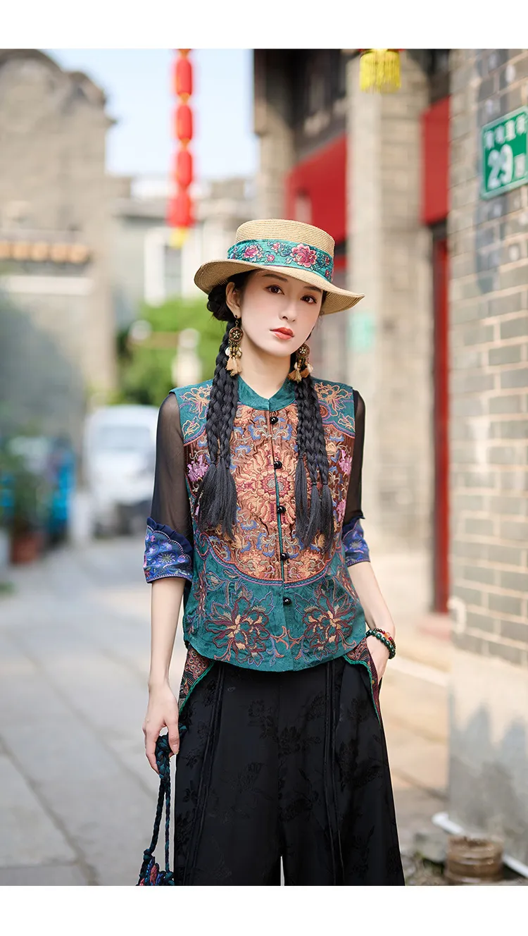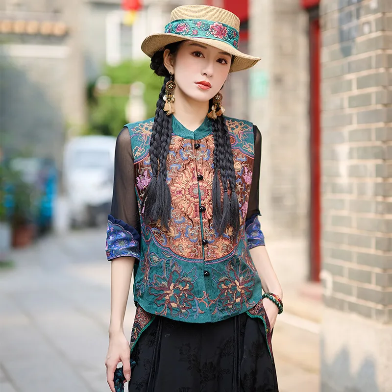 衣都精品- 新款民族風重工刺繡圓領扭扣開襟馬甲