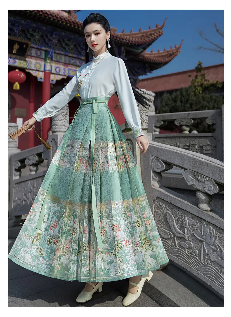 衣都精品- 新款民族風水墨漸層改良漢服上衣+馬面裙套裝