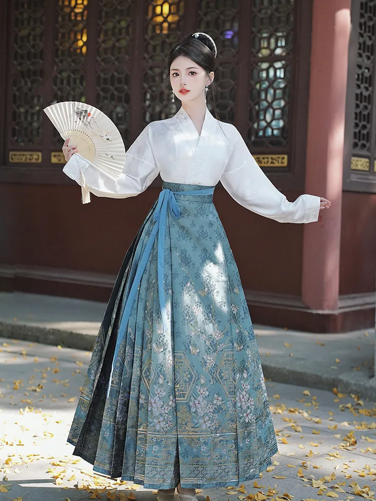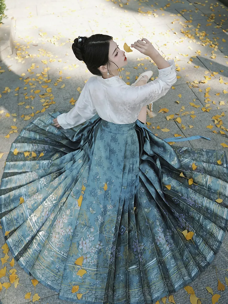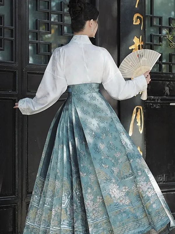 衣都精品- 新款民族風水墨漸層改良漢服上衣+馬面裙套裝