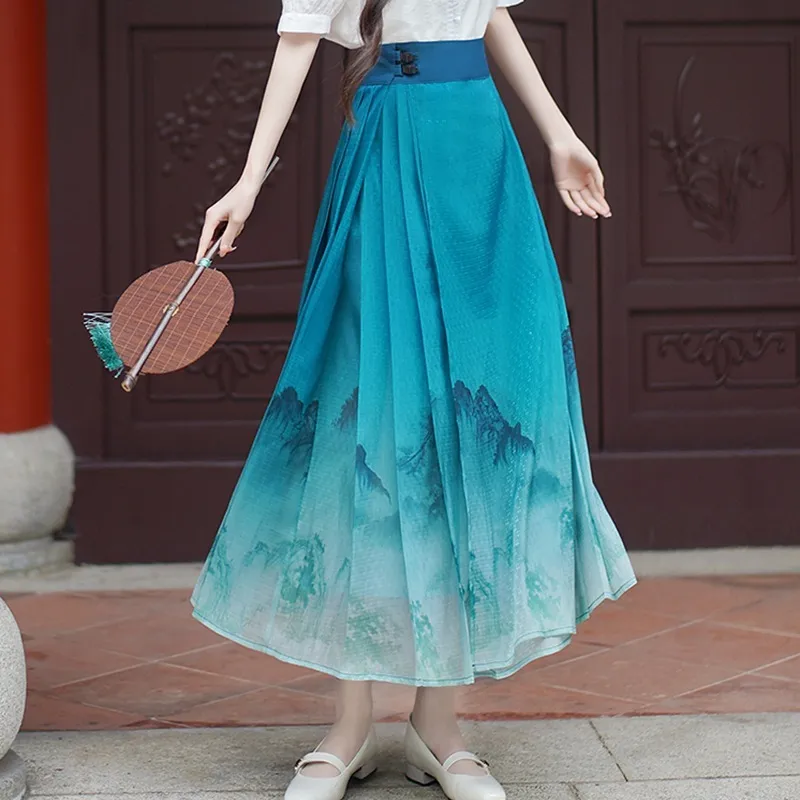 衣都精品- 新款民族風水墨漸層改良漢服上衣+馬面裙套裝