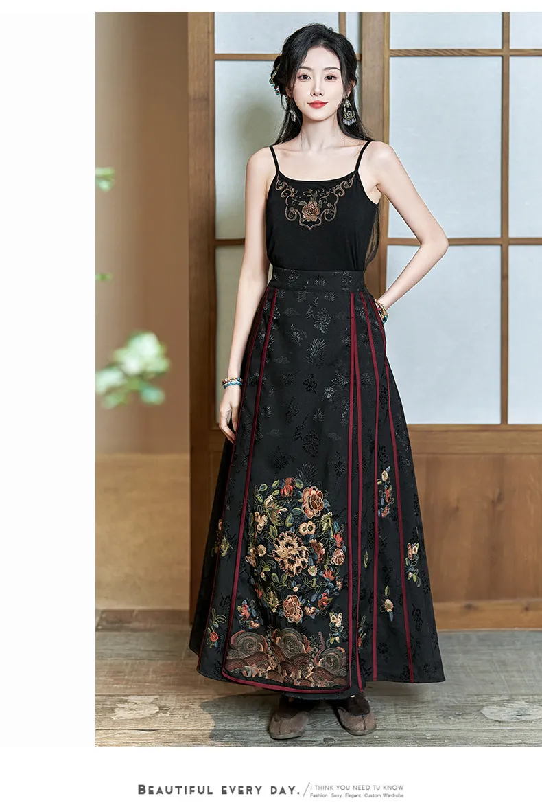 衣都精品- 新款復古改良提花緞面刺繡馬面裙