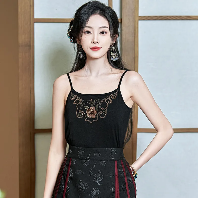 衣都精品- 新款復古改良提花緞面刺繡吊帶