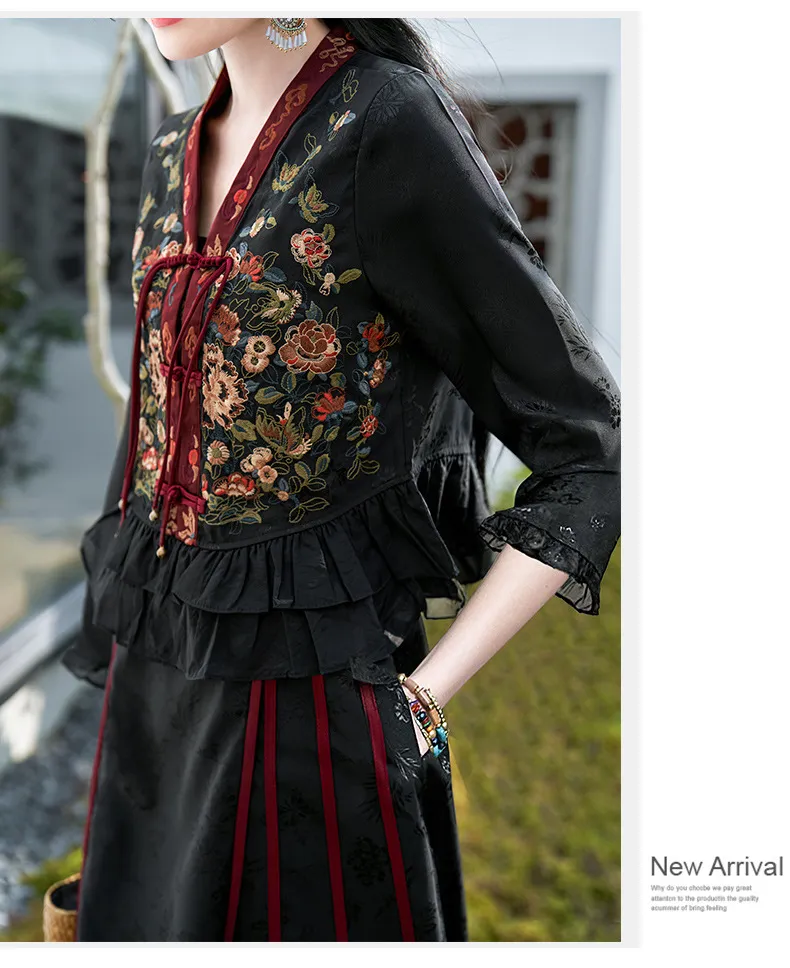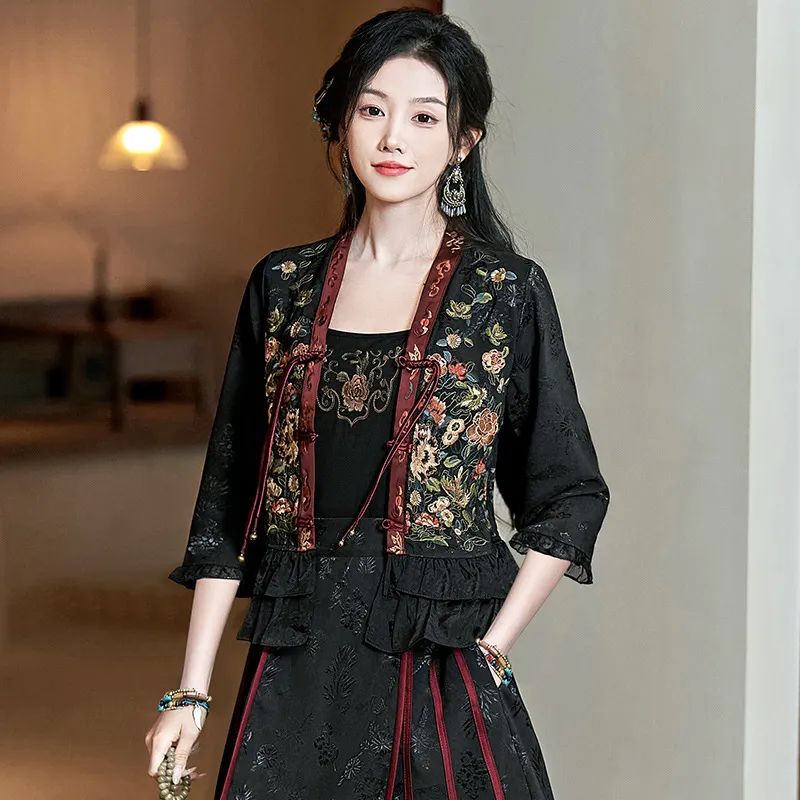 衣都精品- 新款復古改良盤扣提花緞面刺繡上衣