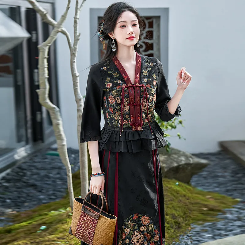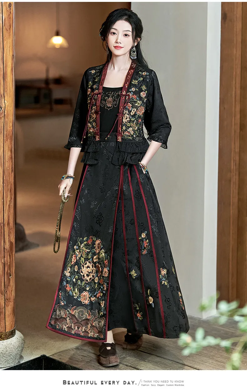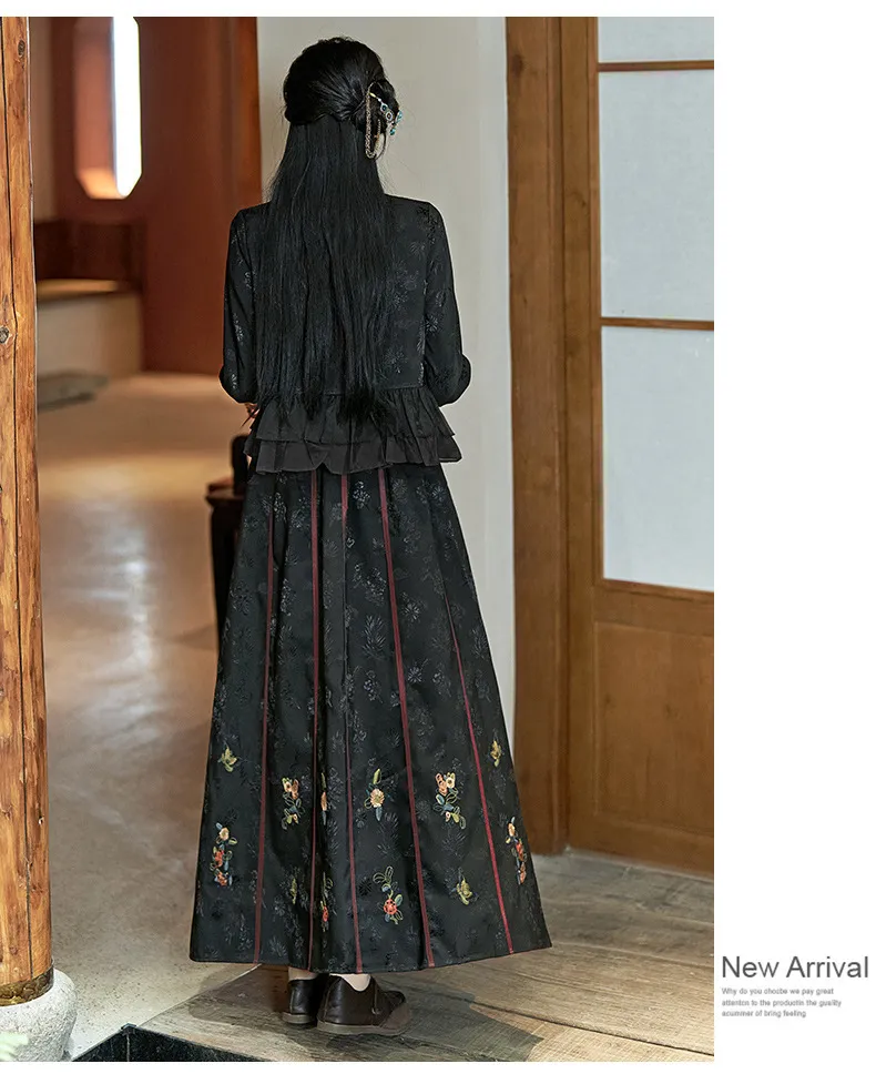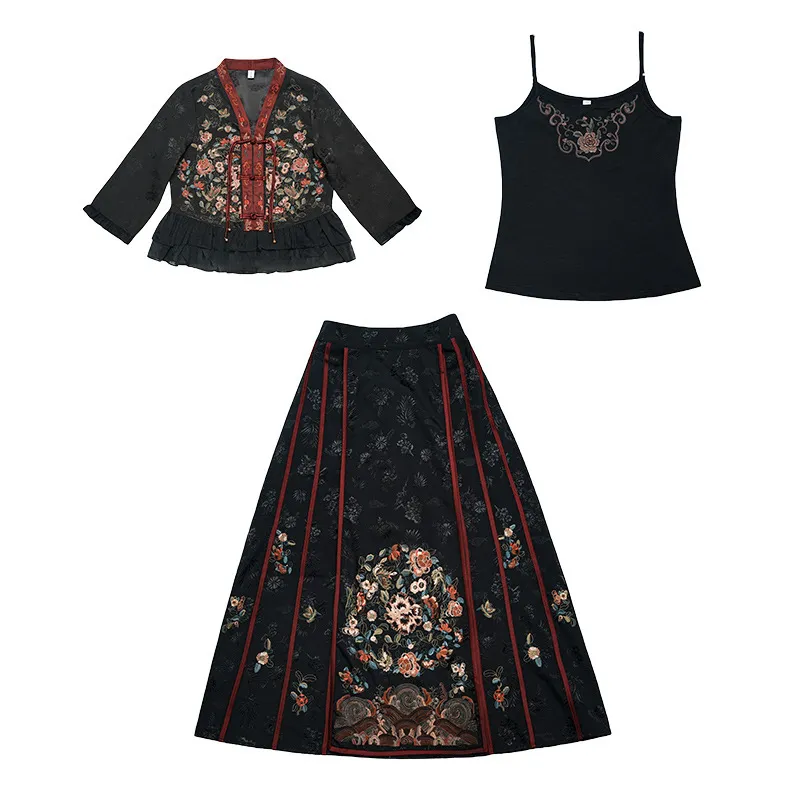 衣都精品- 新款復古改良提花緞面刺繡馬面裙