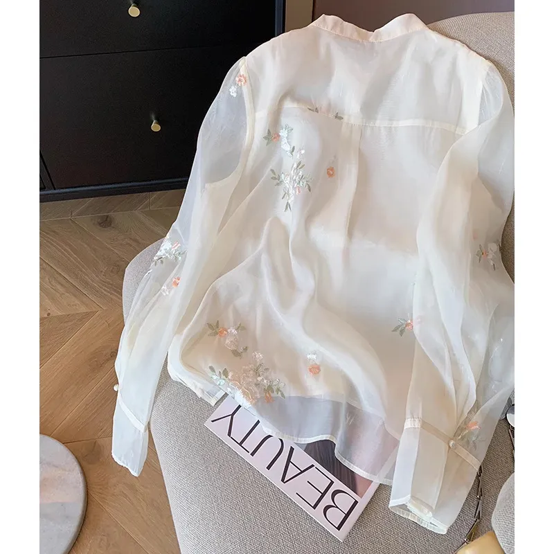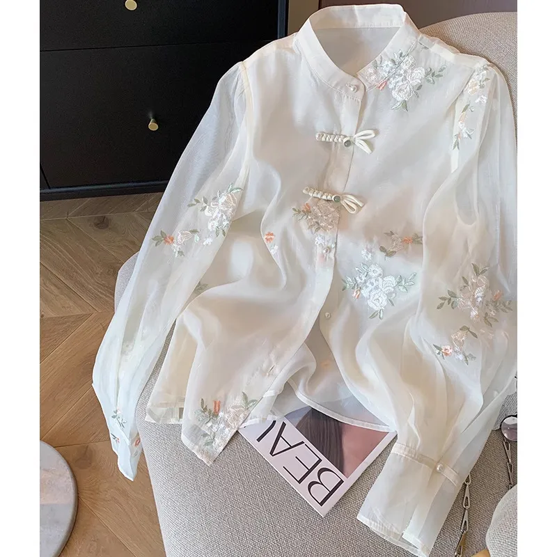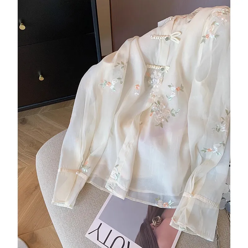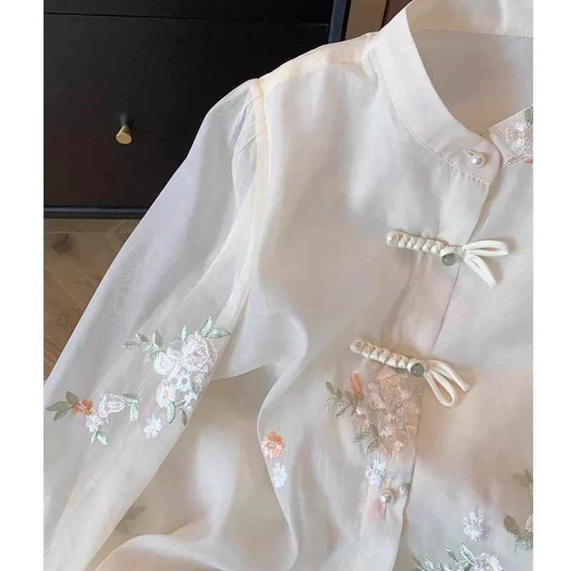 衣都精品- 新款中式立領銀絲重工刺繡上衣+復古刺繡飄帶半身裙套裝