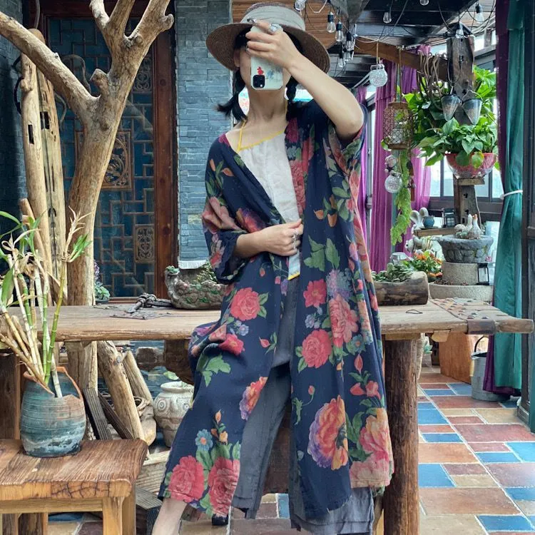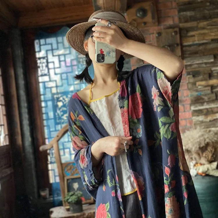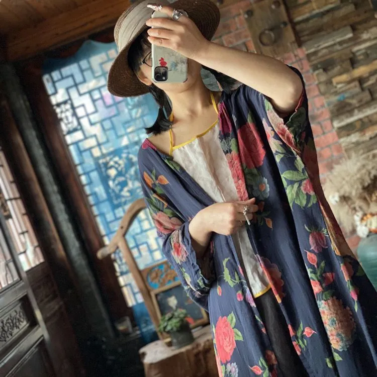 衣都精品- 新款復古東北大花V領不對稱寬鬆上衣