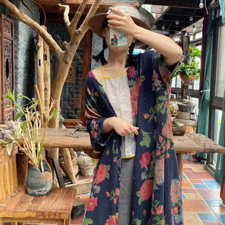 衣都精品- 新款復古寬鬆不對稱口袋對襟長款外套