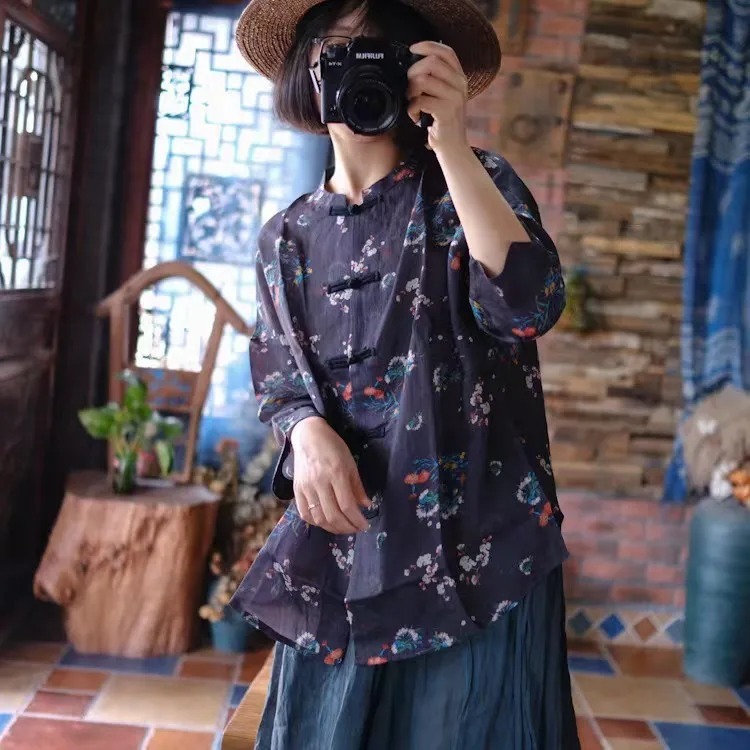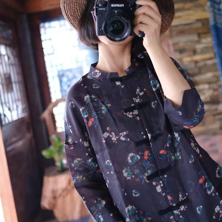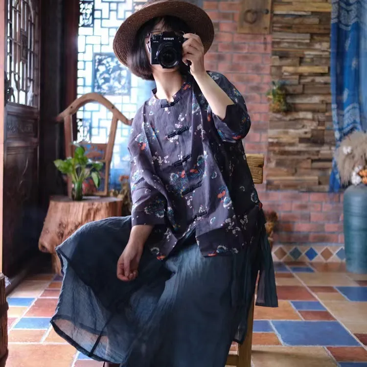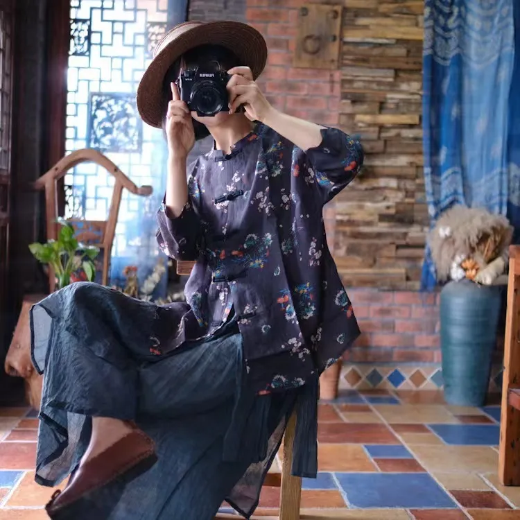 衣都精品- 新款復古純苧麻寬鬆百搭斜襟盤扣上衣