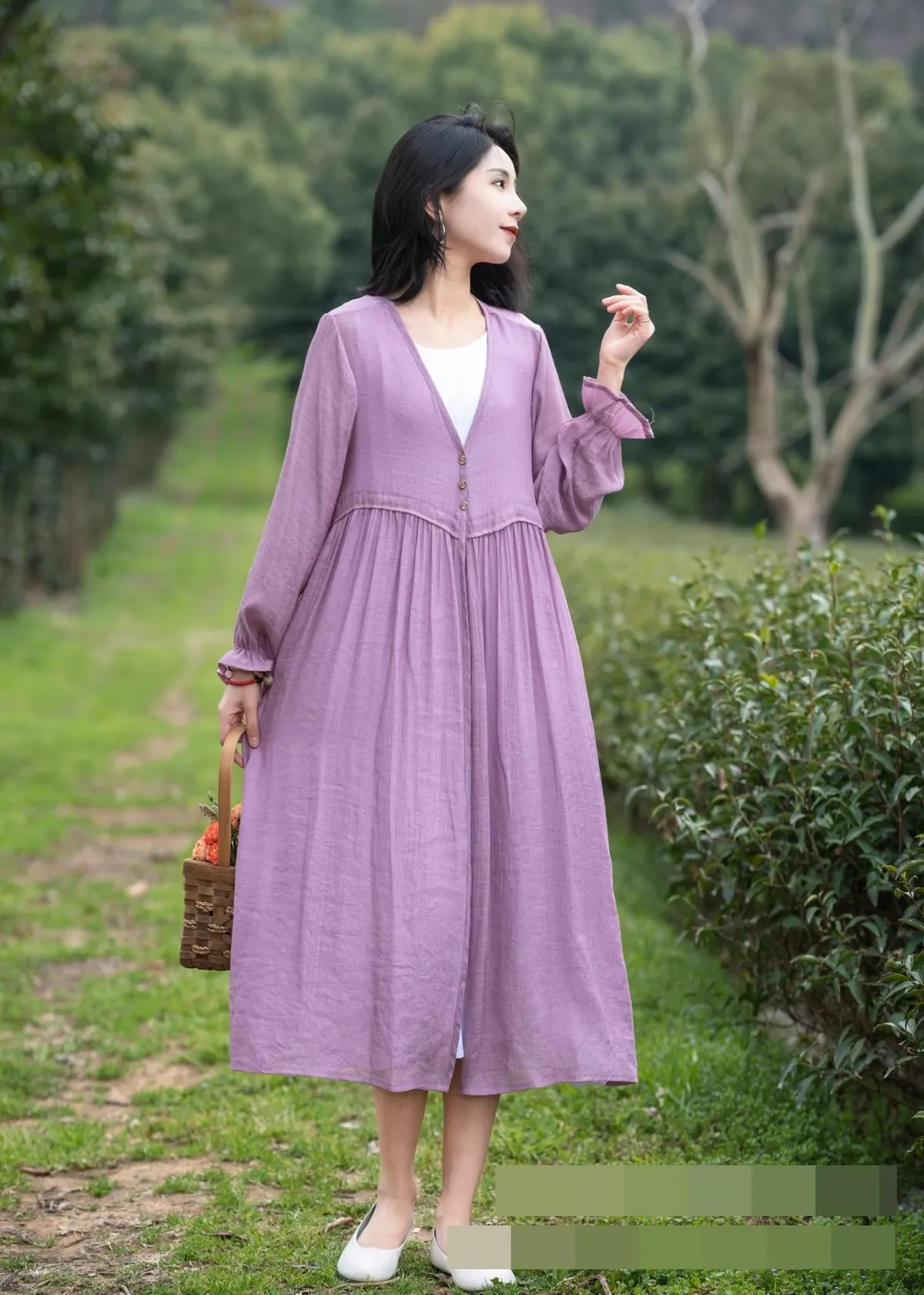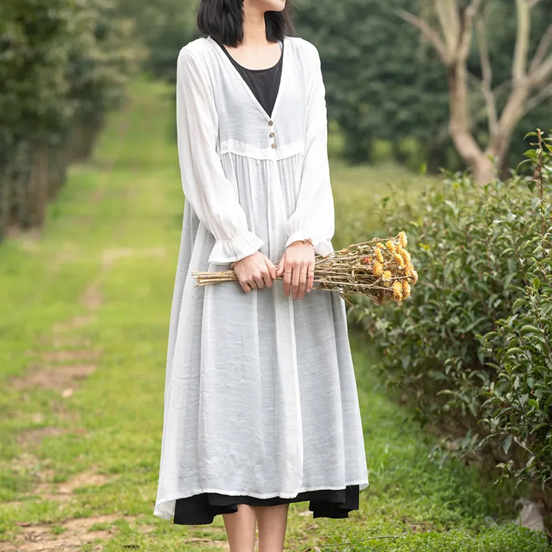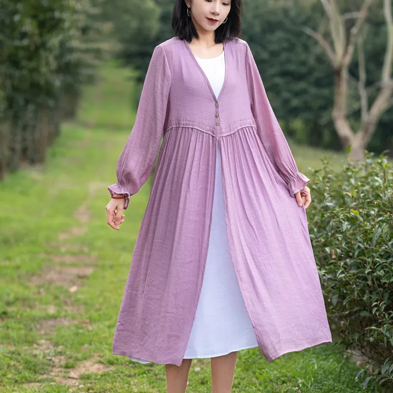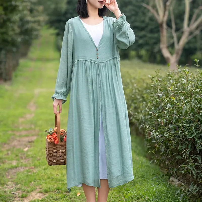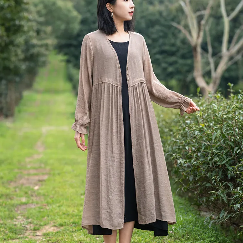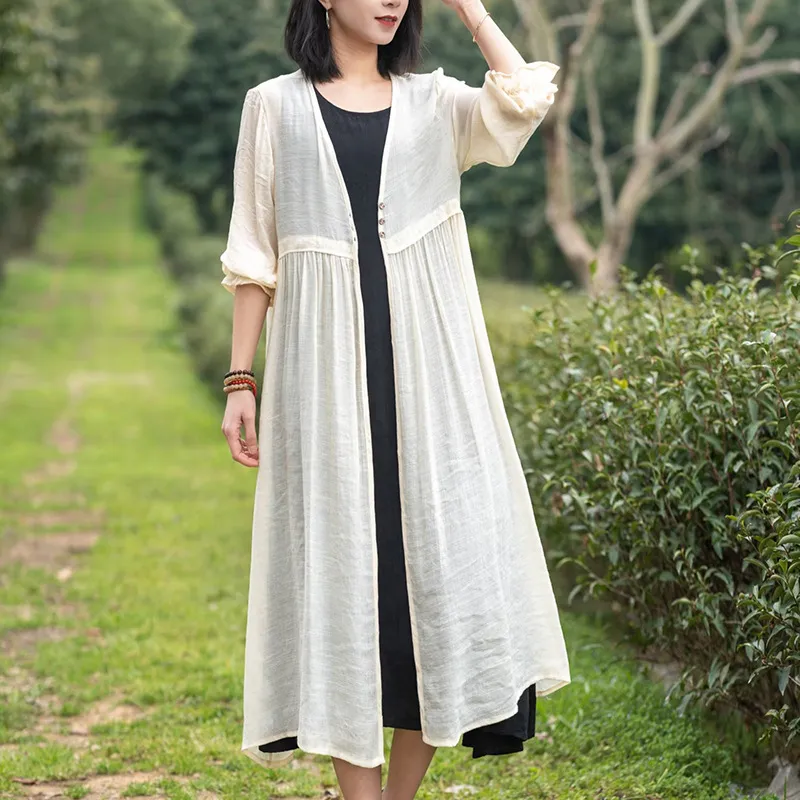 衣都精品- 新款燈籠袖長款拼接三粒扣開襟外套