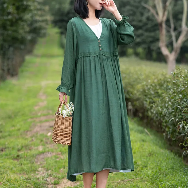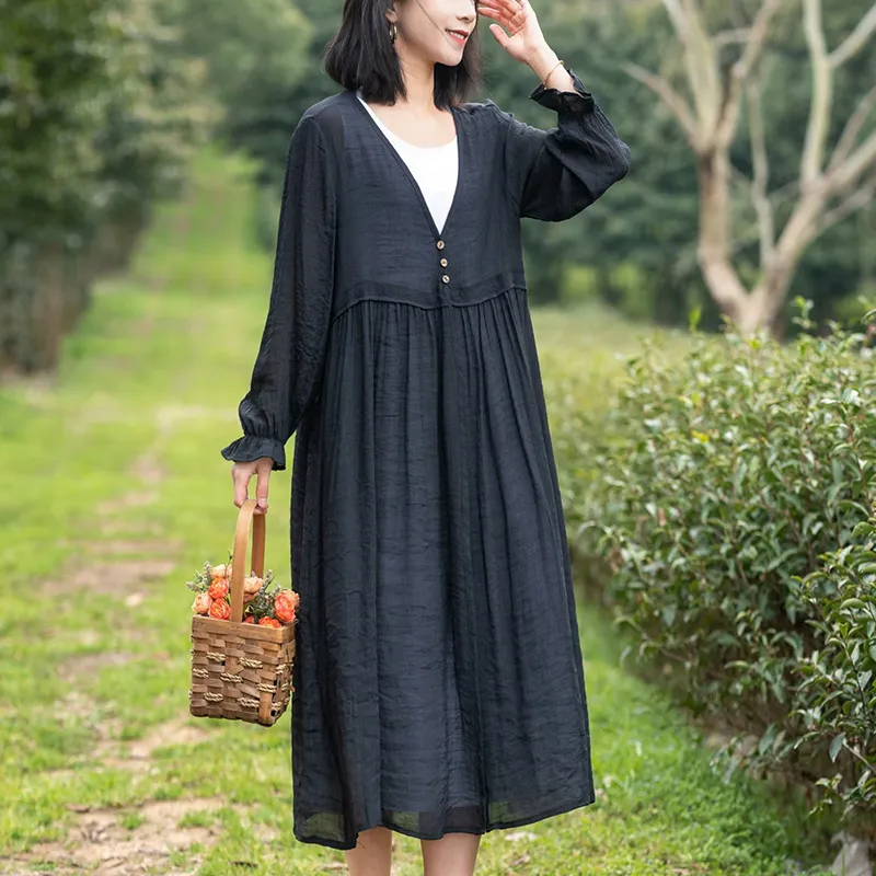 衣都精品- 新款純色大擺雙肩吊帶拼接文藝連衣裙