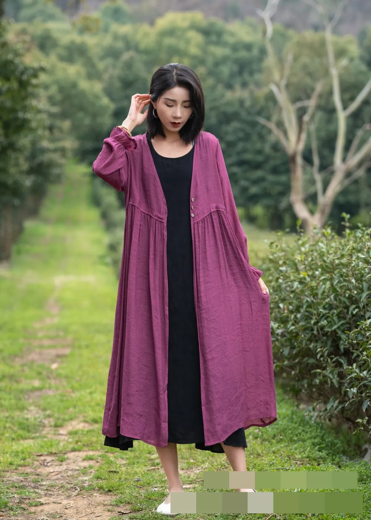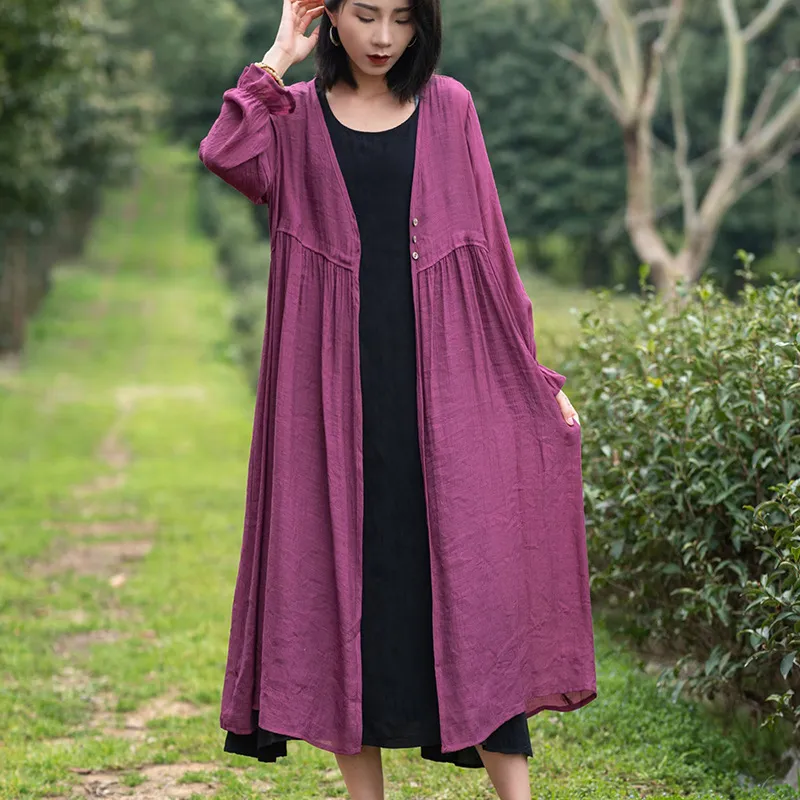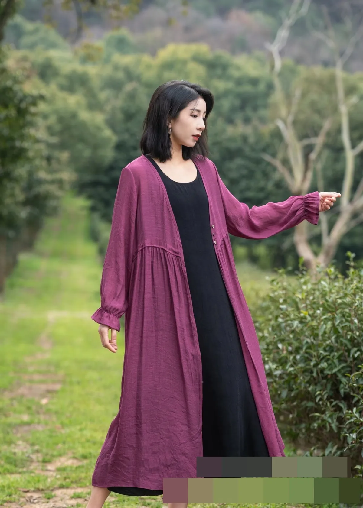 衣都精品- 新款燈籠袖長款拼接三粒扣開襟外套