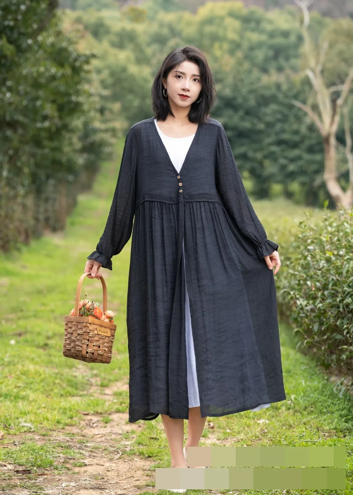 衣都精品- 新款燈籠袖長款拼接三粒扣開襟外套