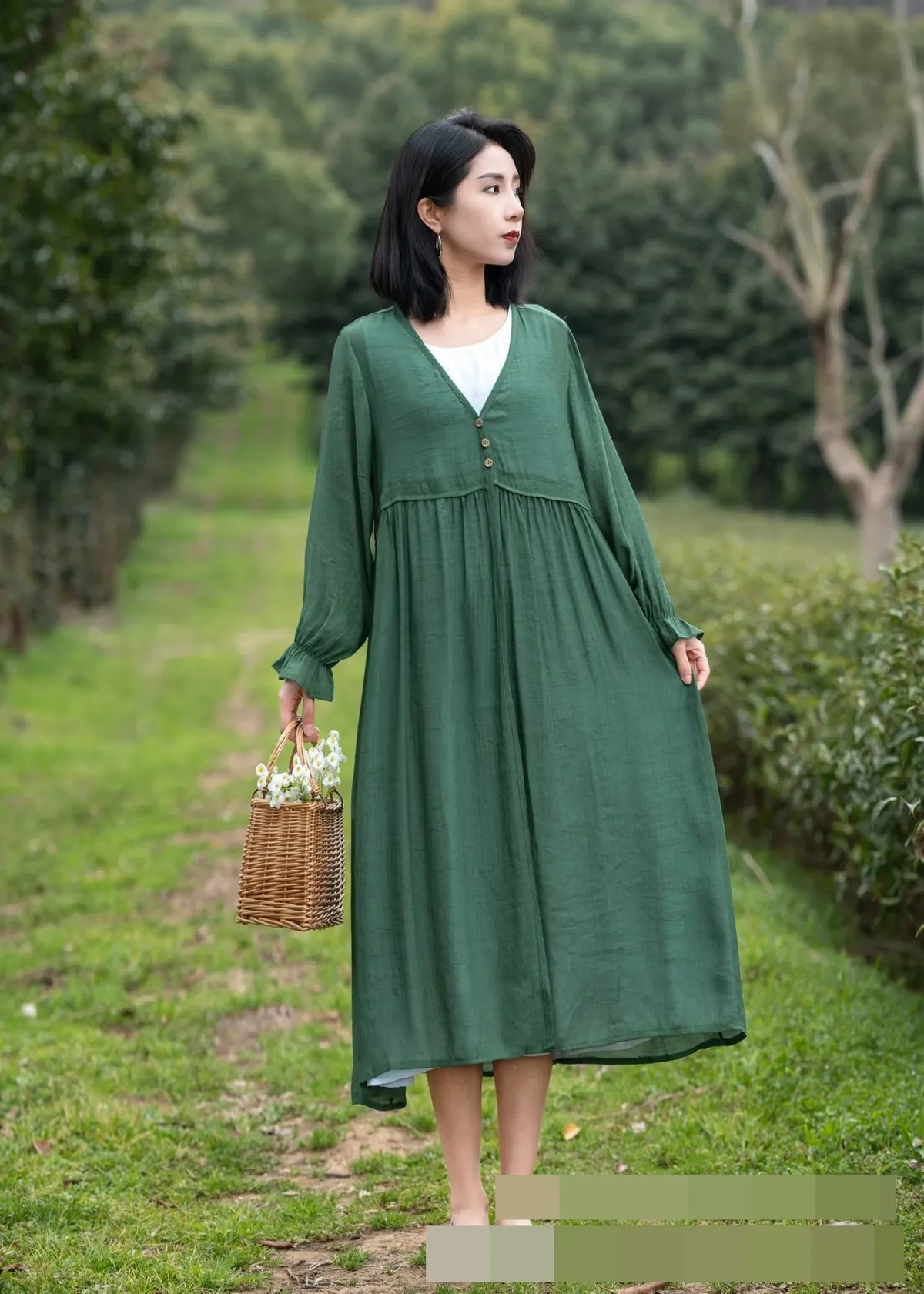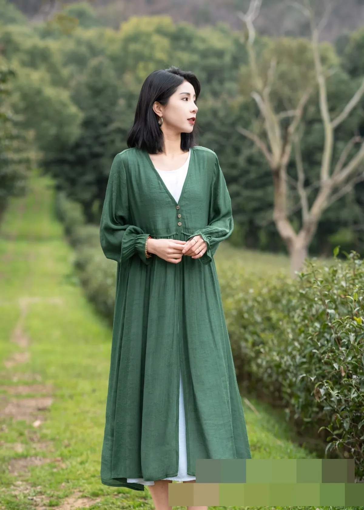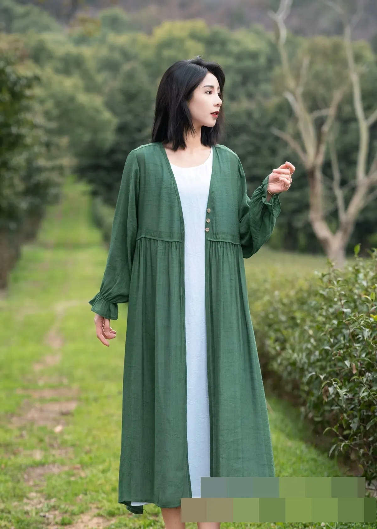 衣都精品- 新款燈籠袖長款拼接三粒扣開襟外套