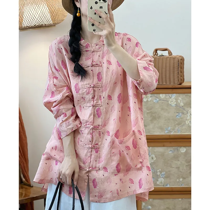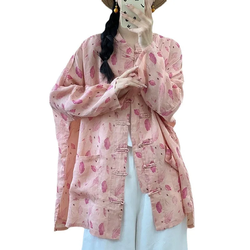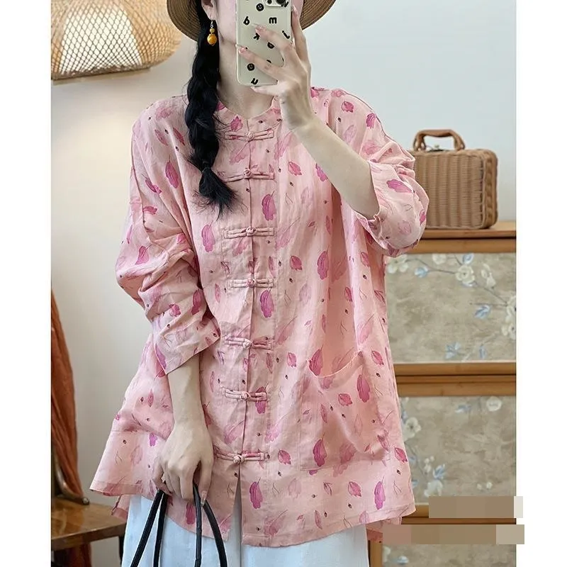 衣都精品- 新款民族風盤扣開襟大碼寬鬆休閒上衣