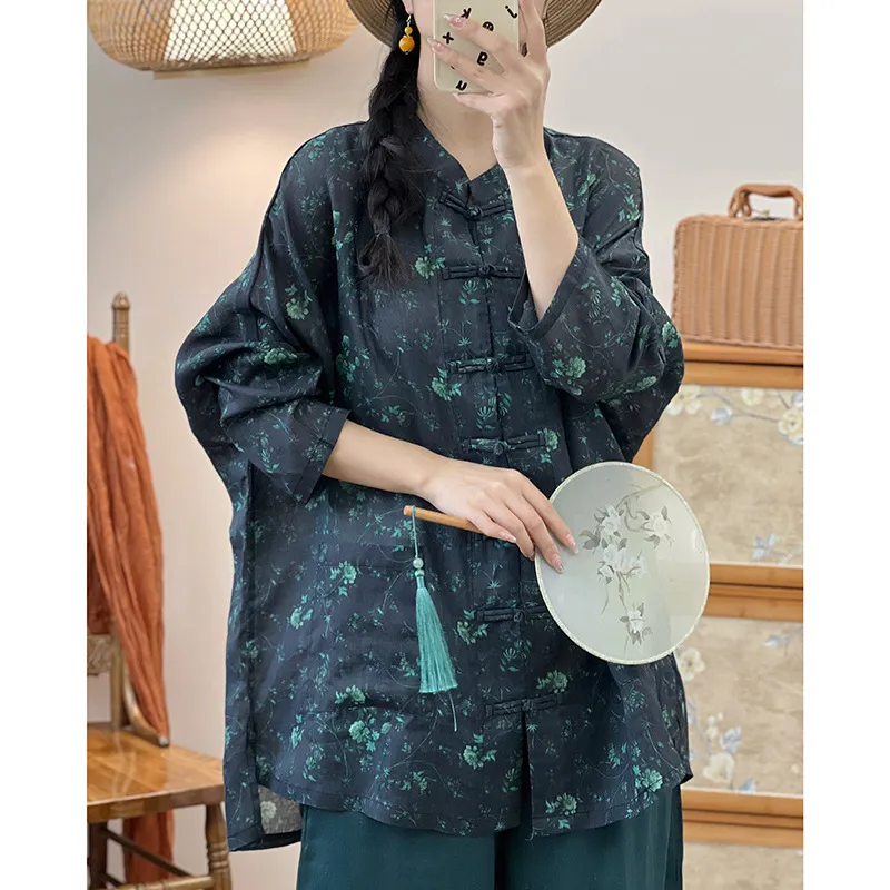 衣都精品- 新款民族風盤扣開襟大碼寬鬆休閒上衣
