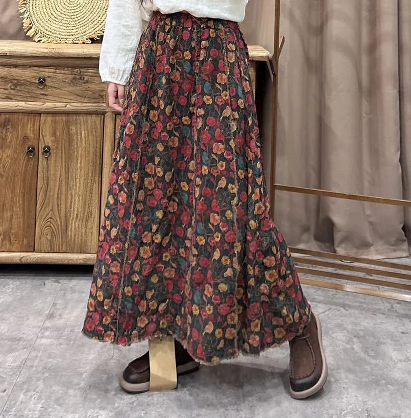衣都精品- 新款民族風大碼鬆緊腰碎花半身裙