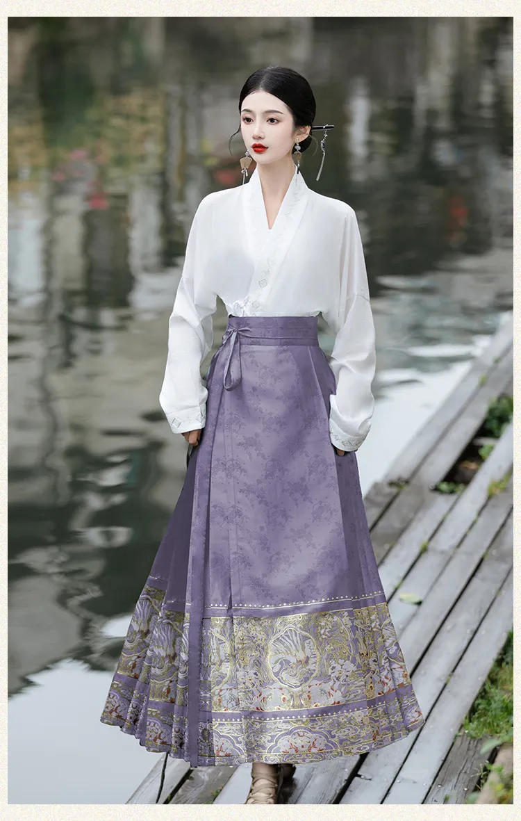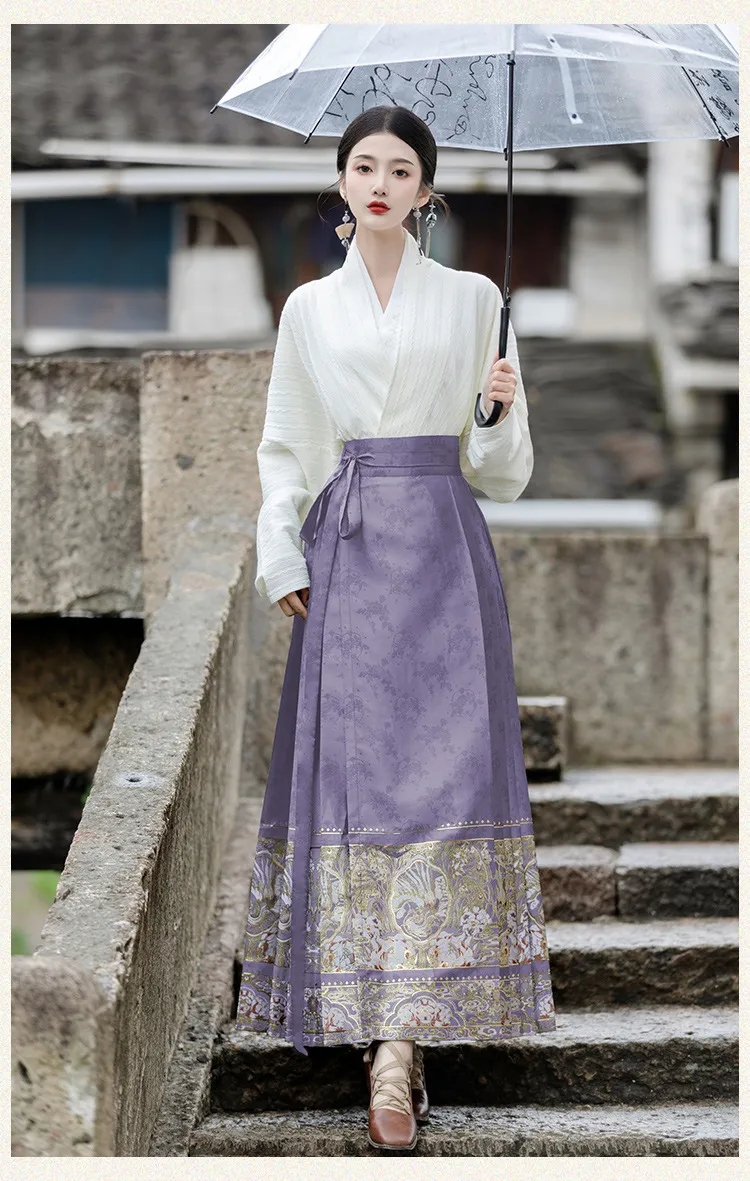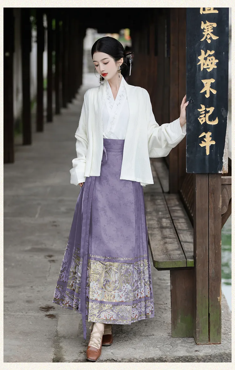 衣都精品- 新款復古改良漢服純色刺繡上衣+織金馬面裙套裝