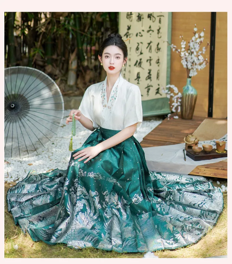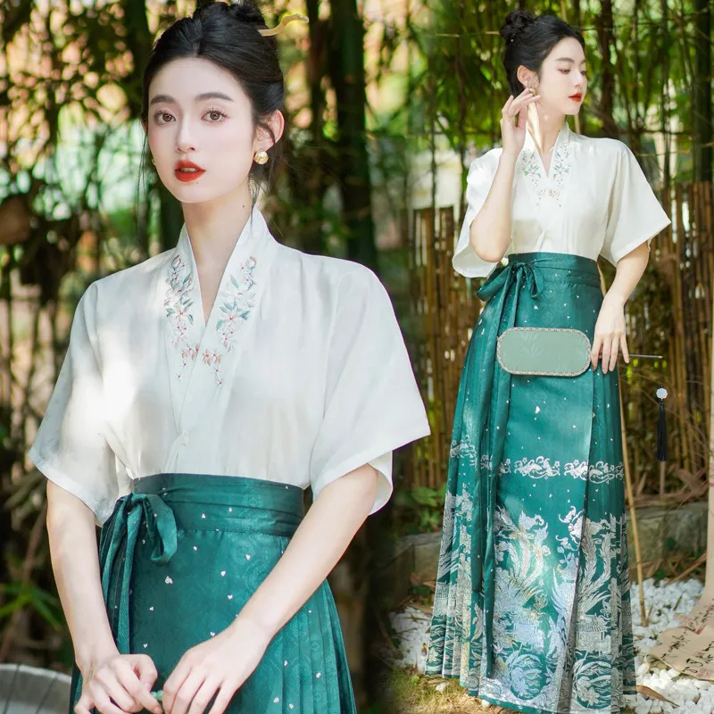 衣都精品- 新款復古改良漢服純色刺繡上衣+織金馬面裙套裝