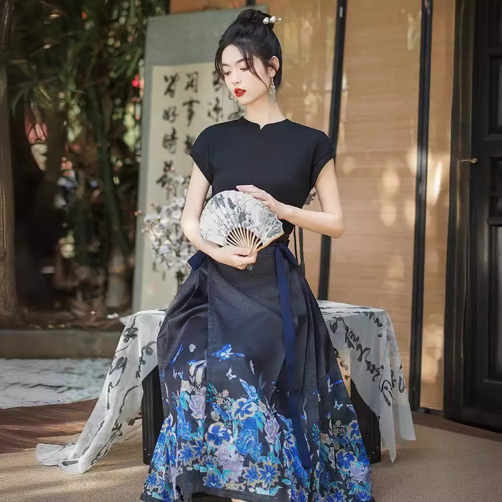 衣都精品- 新款復古改良漢服純色刺繡上衣+織金馬面裙套裝