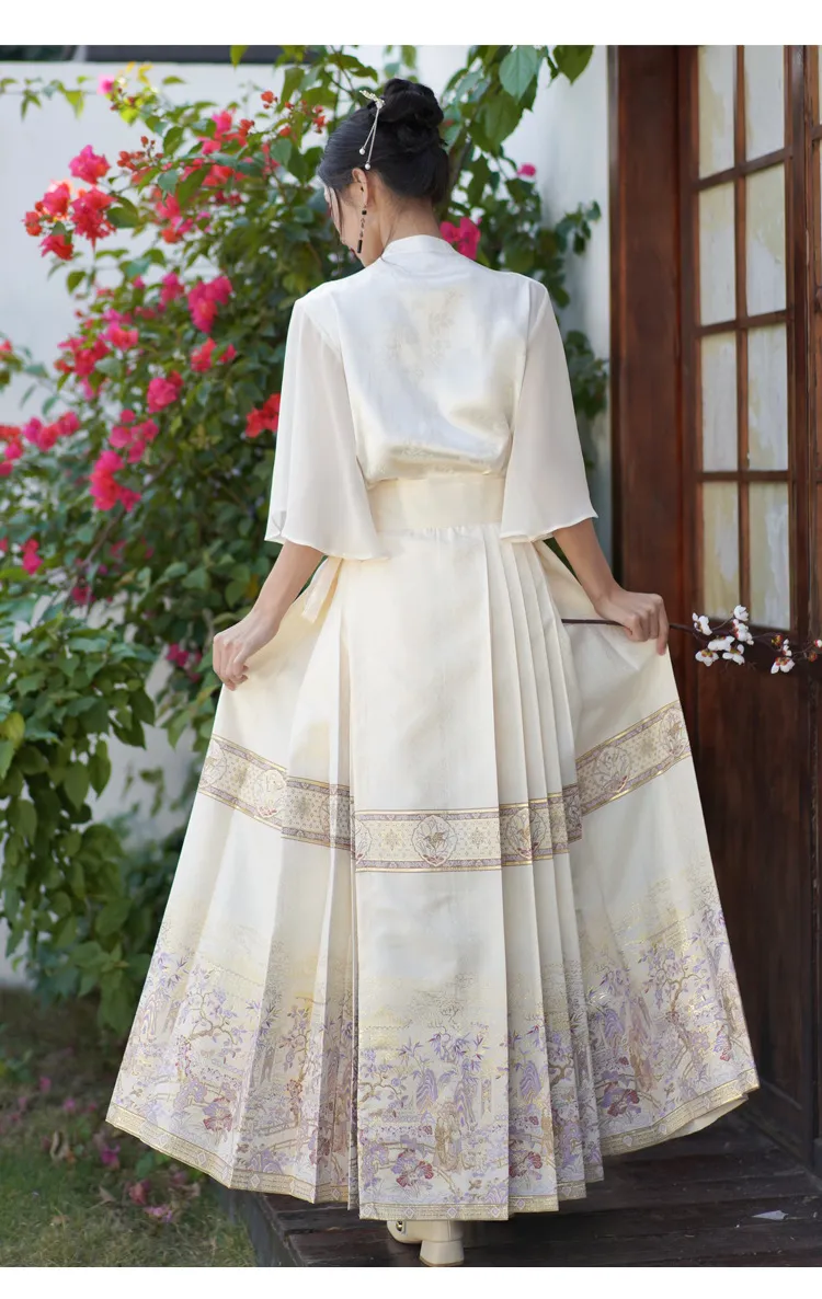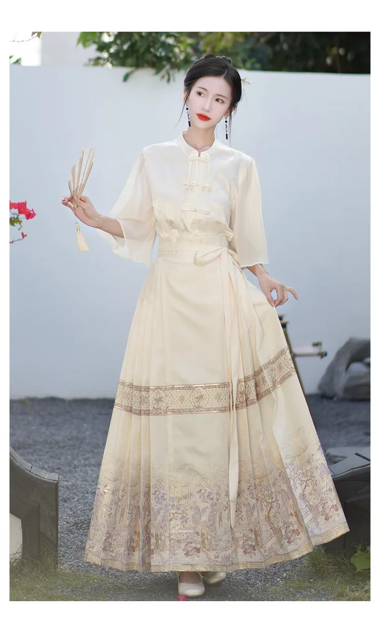 衣都精品- 新款復古改良漢服純色刺繡上衣+織金馬面裙套裝