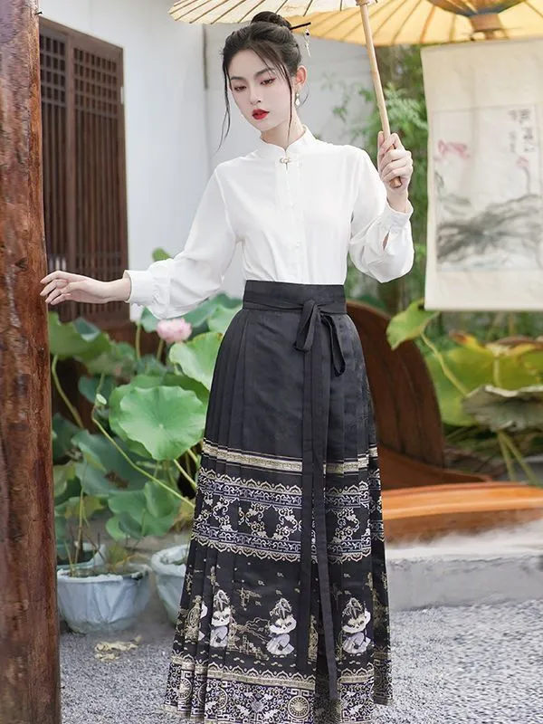 衣都精品- 新款復古改良漢服印花馬面裙