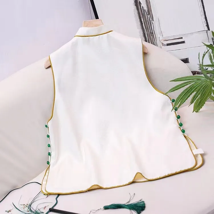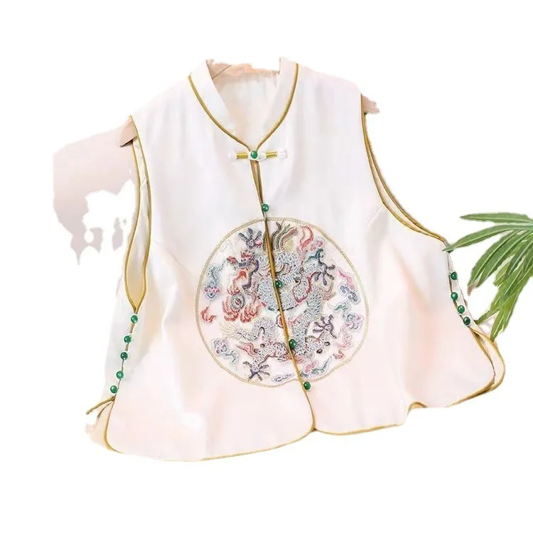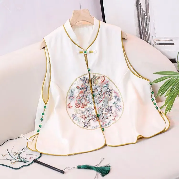 衣都精品- 新款民族風刺繡緞面提花盤扣無袖上衣