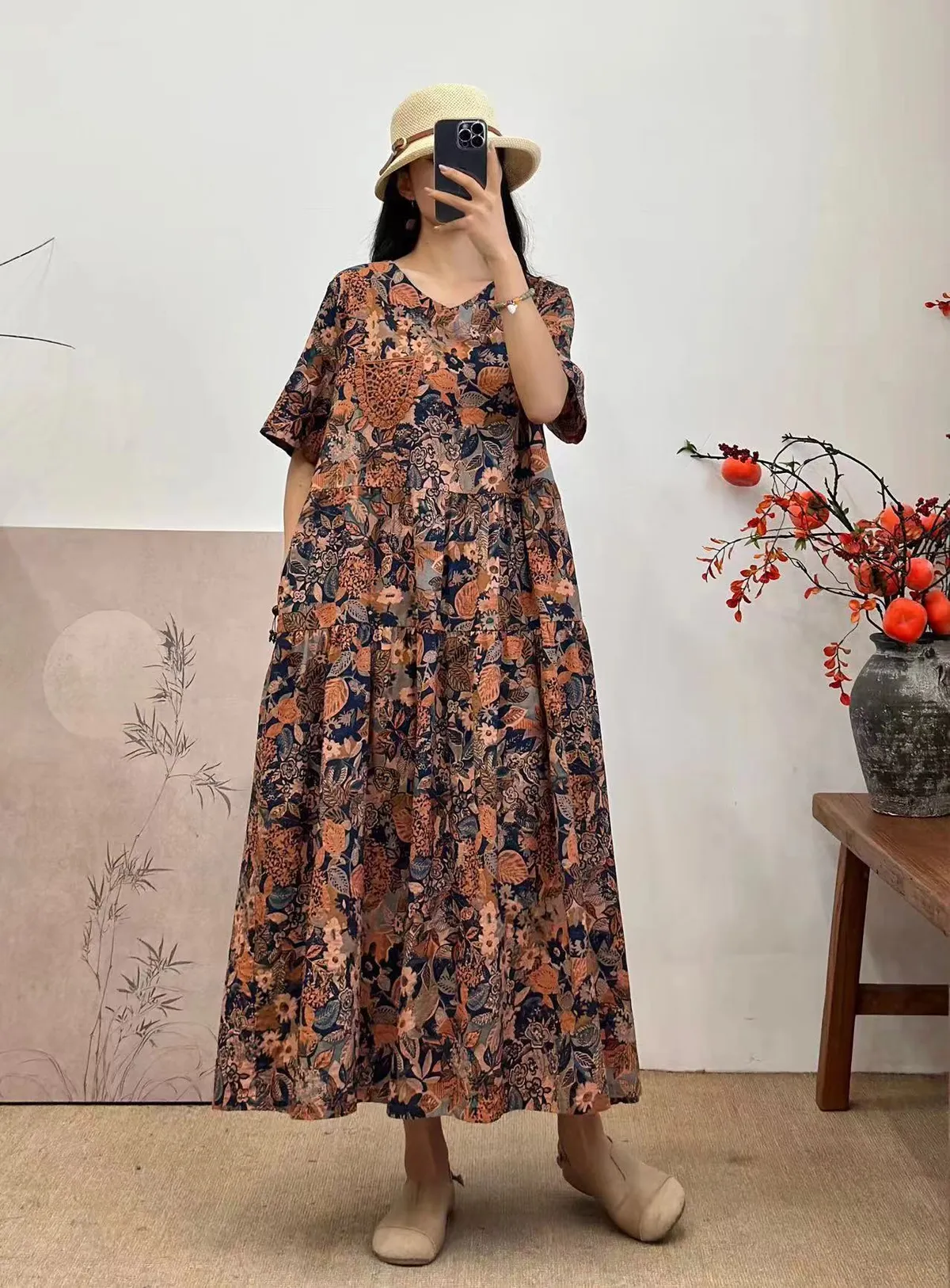 衣都精品- 新款民族風透氣舒適碎花短袖連衣裙