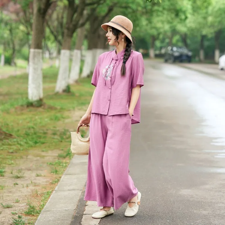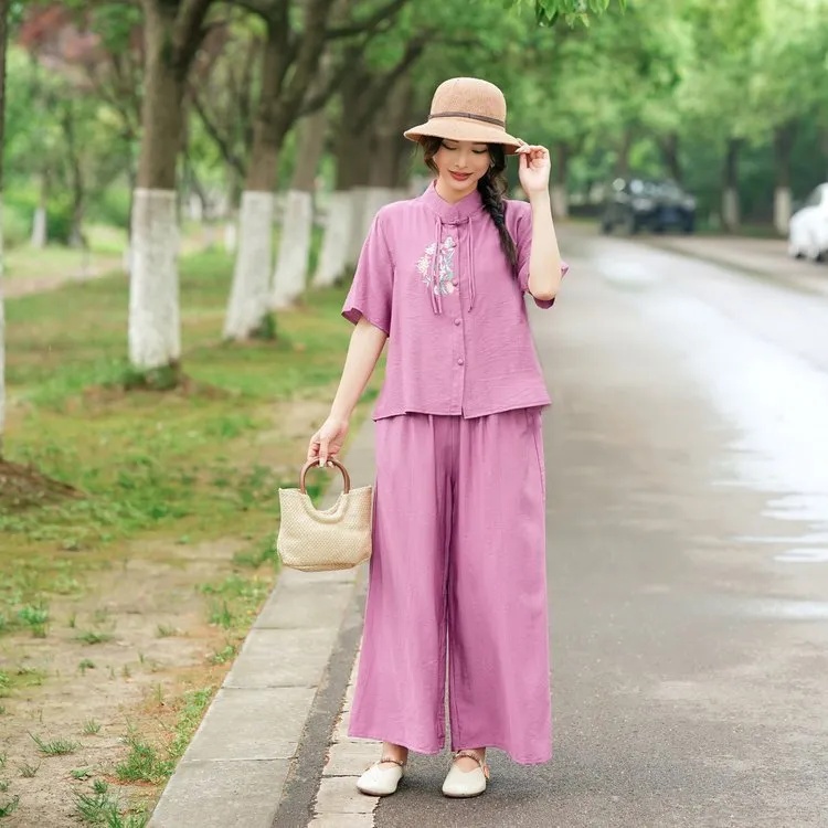 衣都精品- 新款民族風大碼短袖上衣+闊腿褲套裝