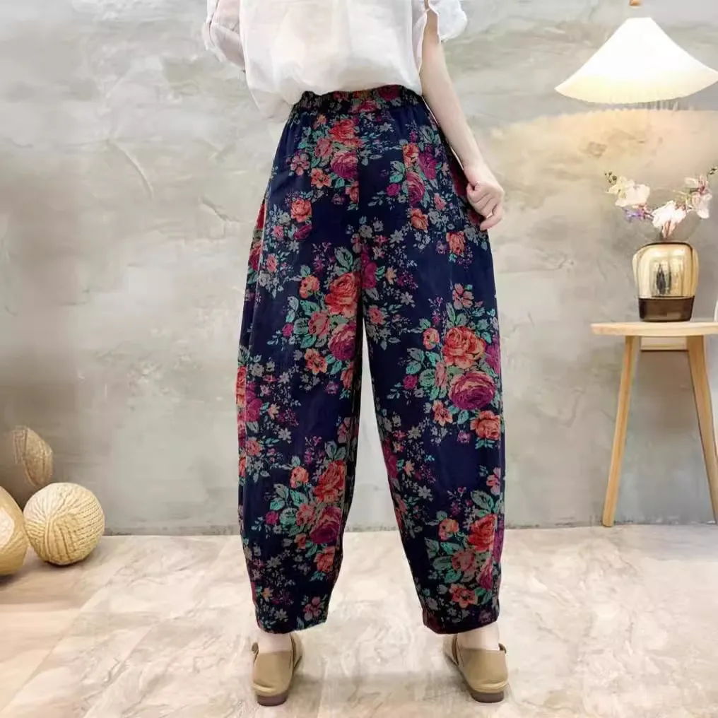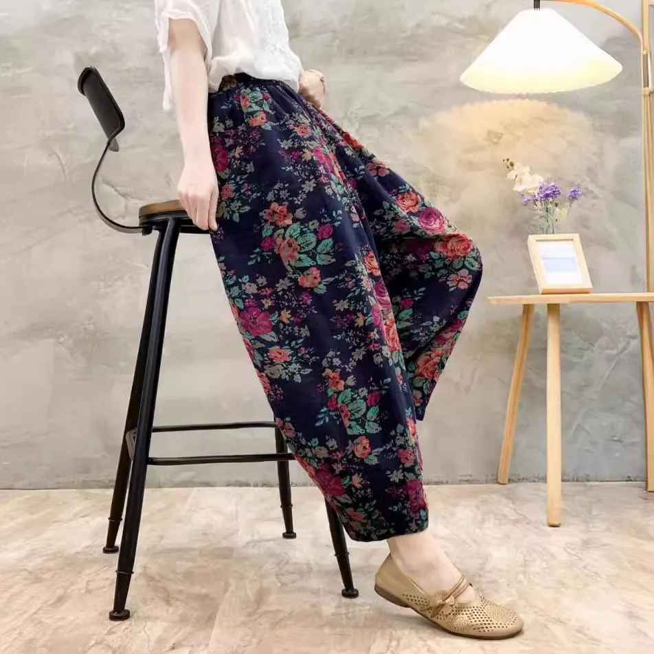 衣都精品- 新款民族風鬆緊腰百搭寬鬆碎花休閒哈倫褲