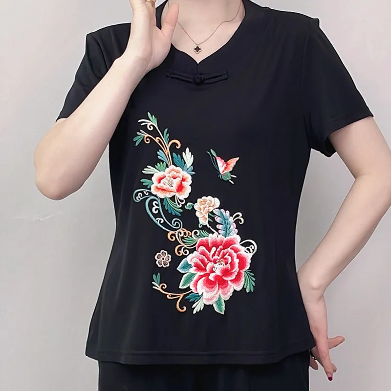 衣都精品- 新款民族風繡花套頭修身大碼上衣