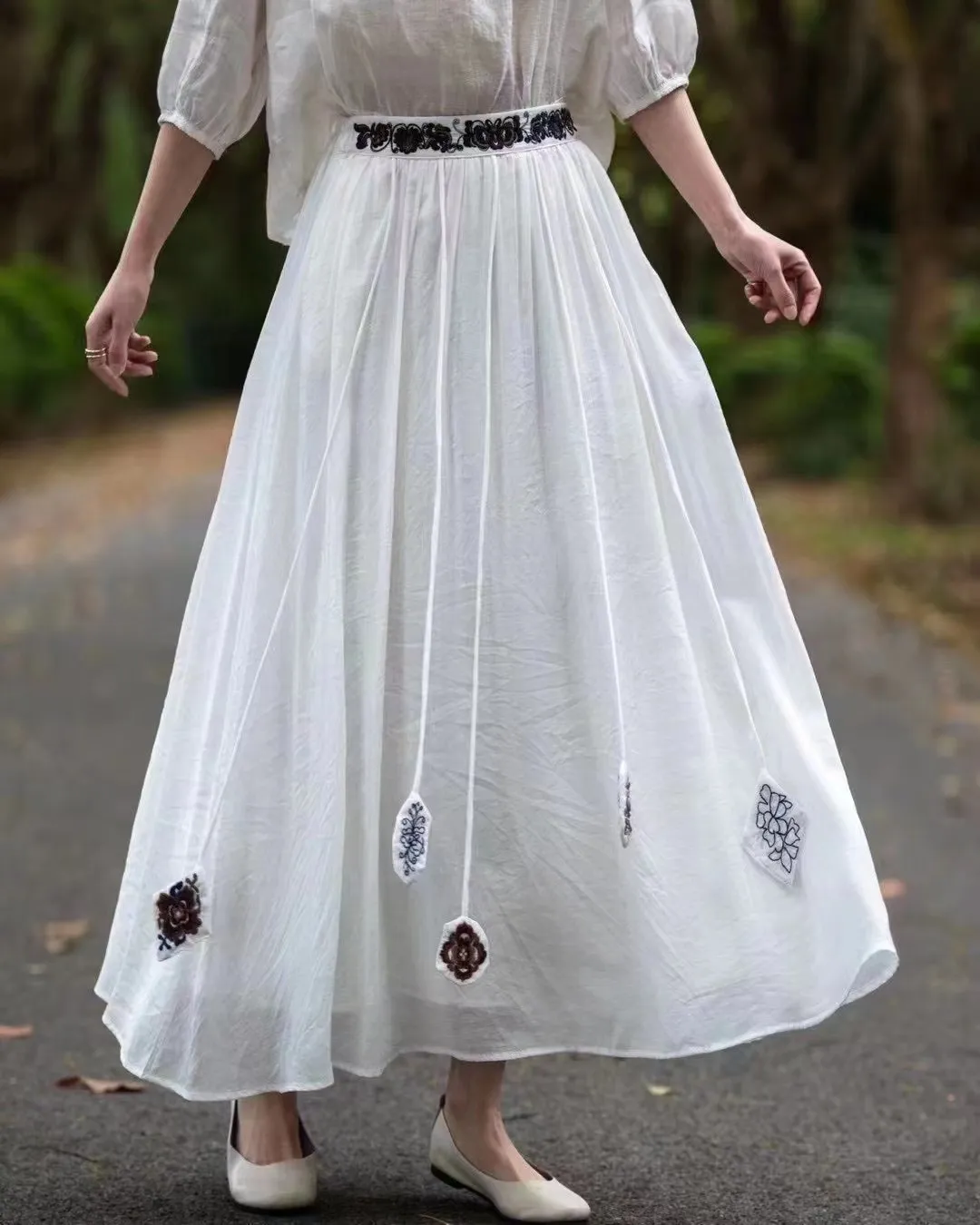 衣都精品- 新款民族風飄逸仙女高腰刺繡大碼半身裙
