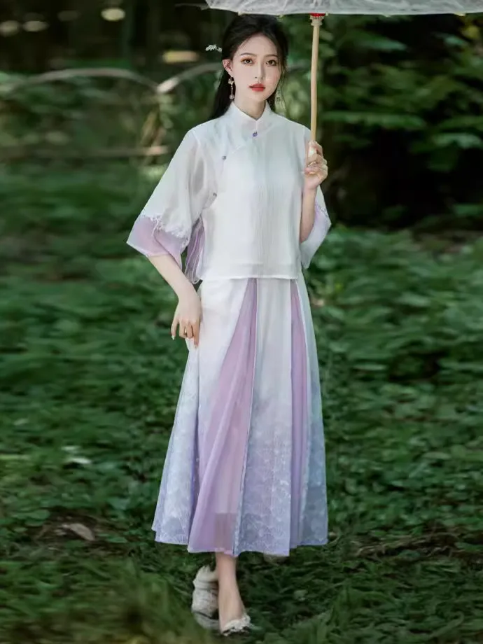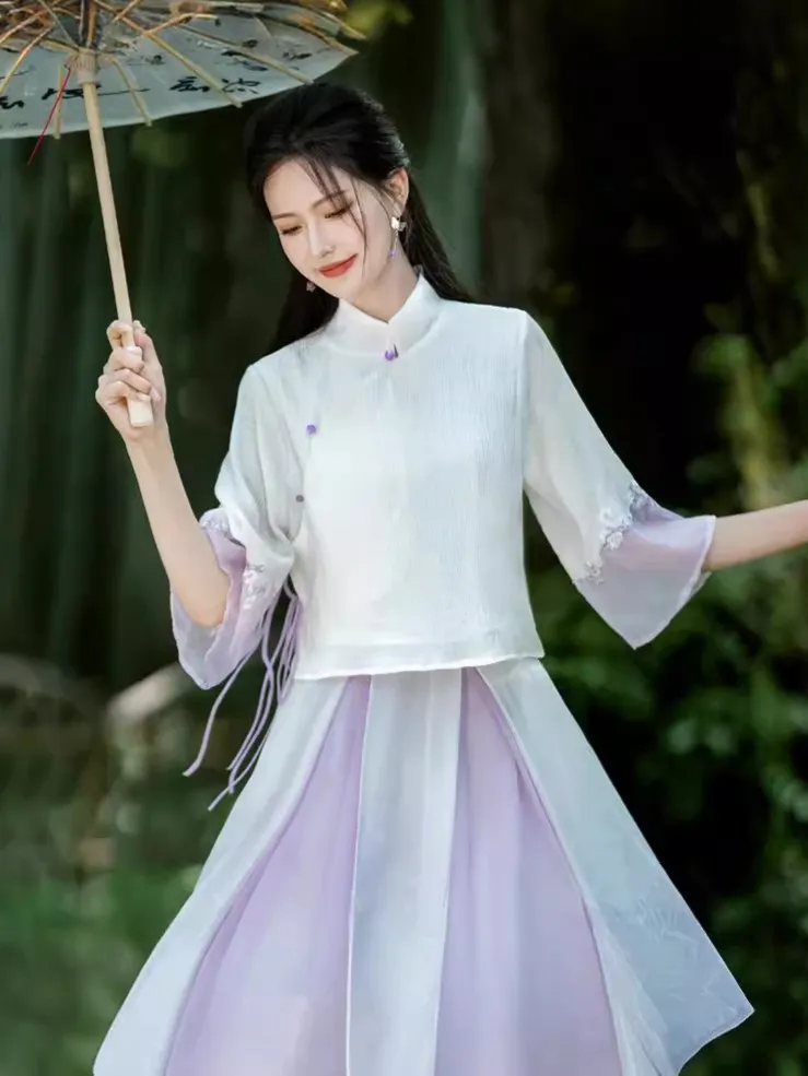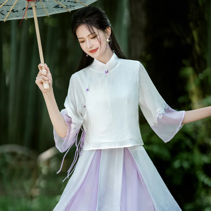 衣都精品- 新款復古立領改良唐裝旗袍上衣+半身裙套裝