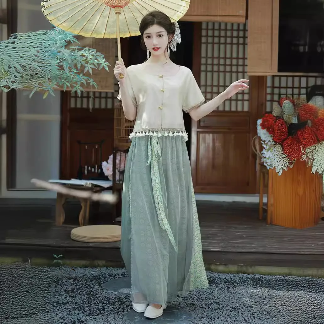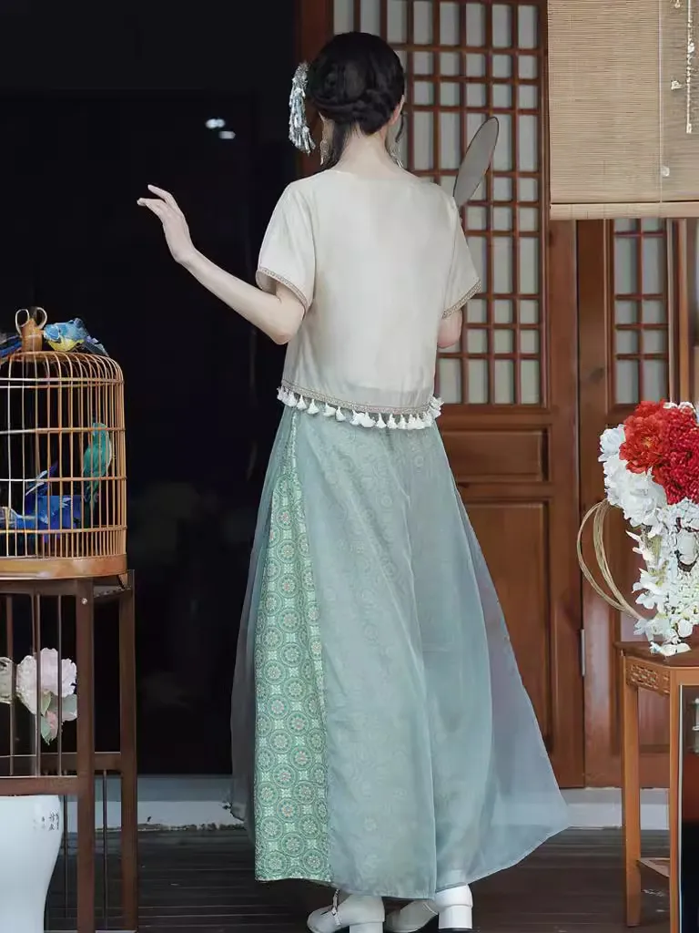 衣都精品- 新款復古立領改良唐裝旗袍上衣+半身裙套裝
