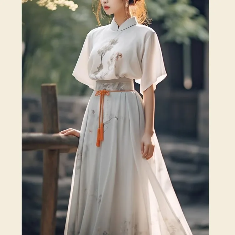 衣都精品- 新款復古立領改良唐裝旗袍上衣+半身裙套裝