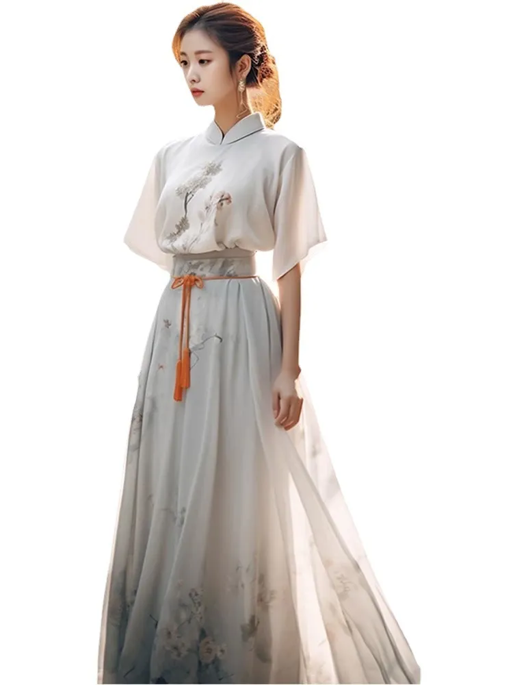 衣都精品- 新款復古立領改良唐裝旗袍上衣+半身裙套裝