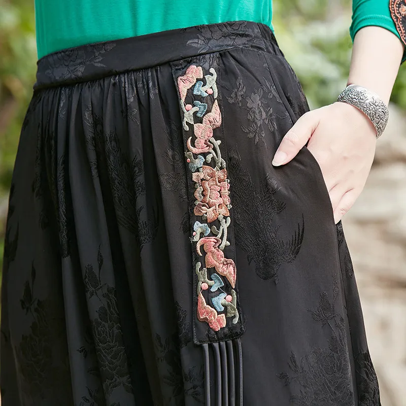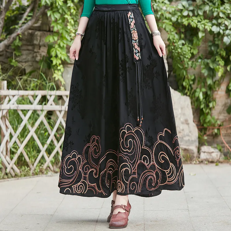 衣都精品- 新款民族風復古繡花中長款大擺半身裙