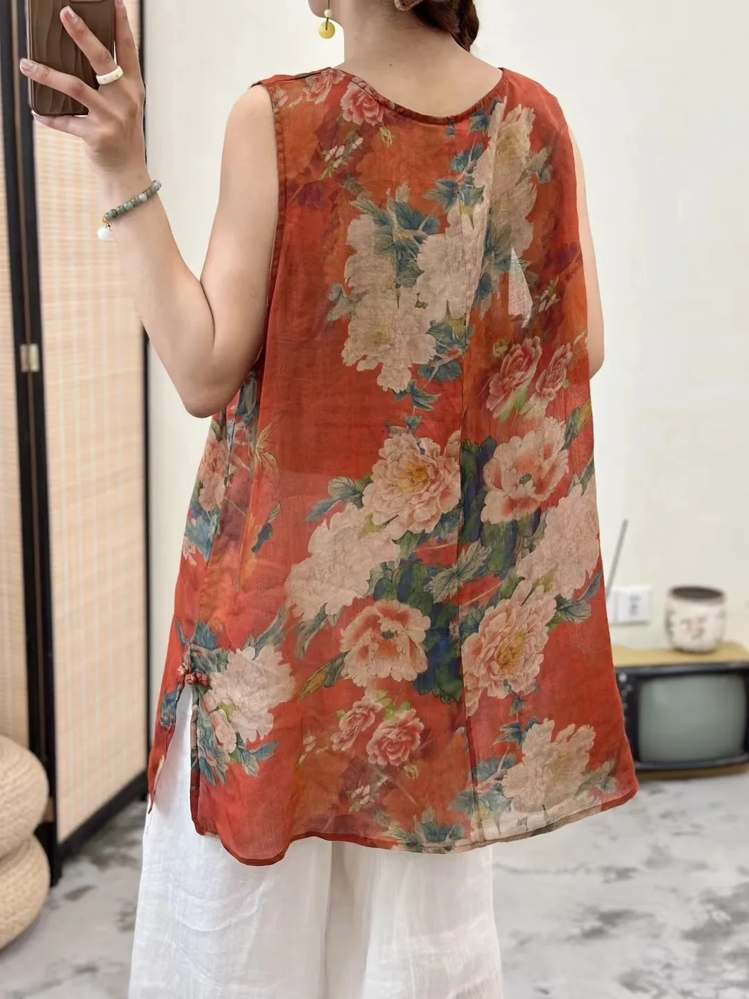 衣都精品- 新款中國風改良刺繡歐根紗立領背心上衣