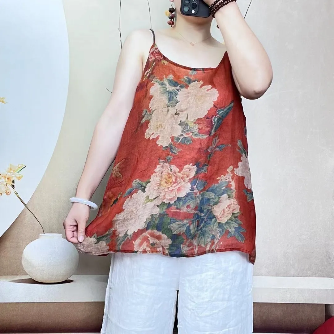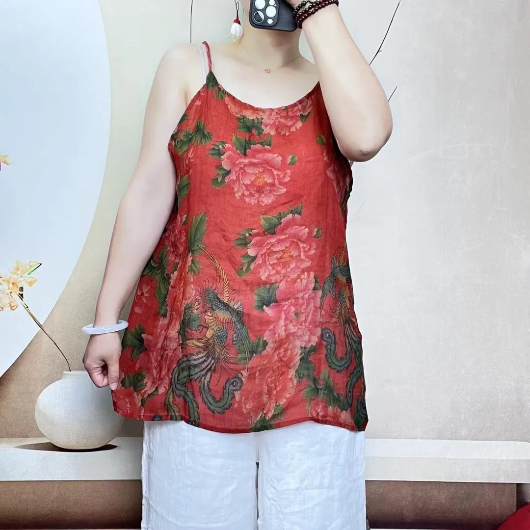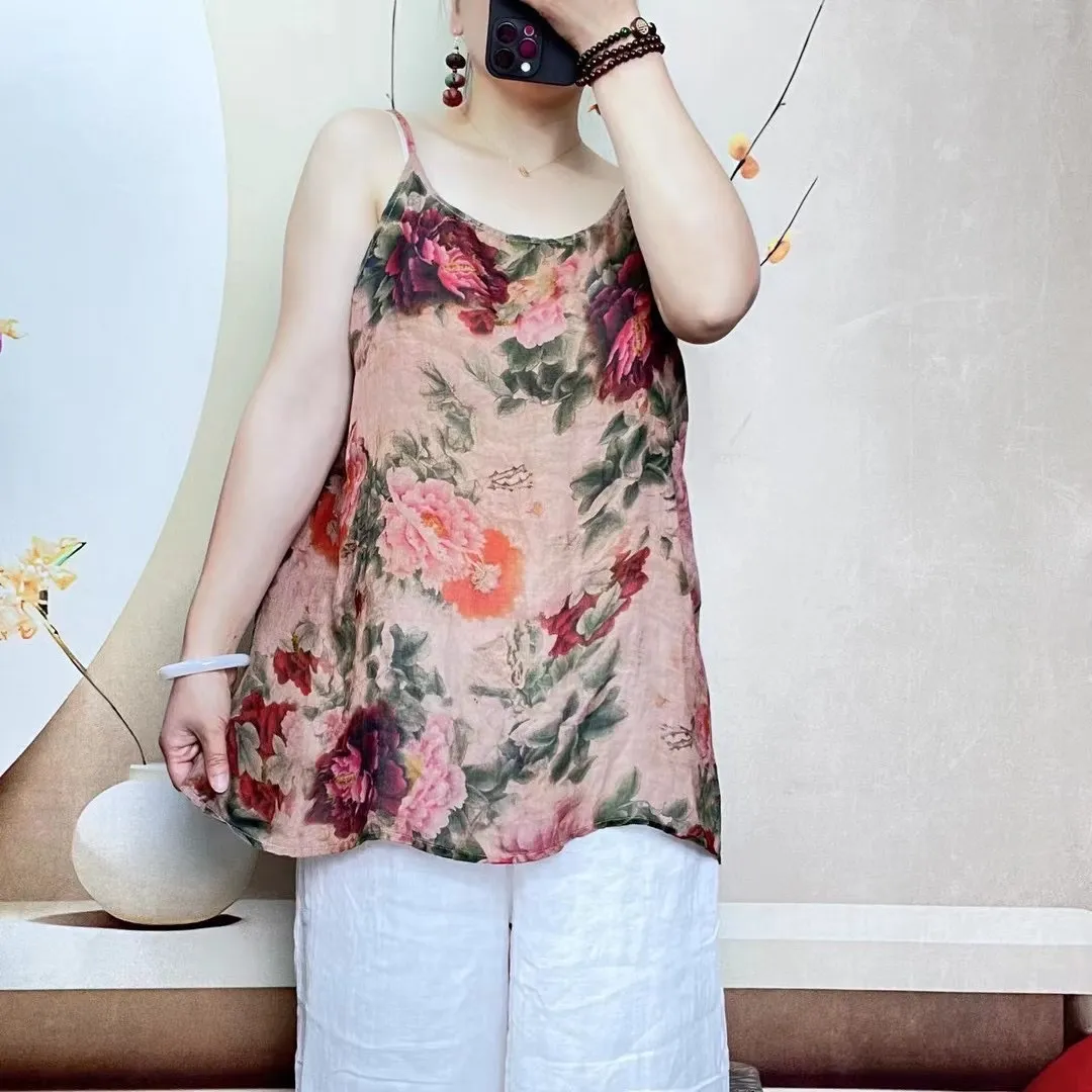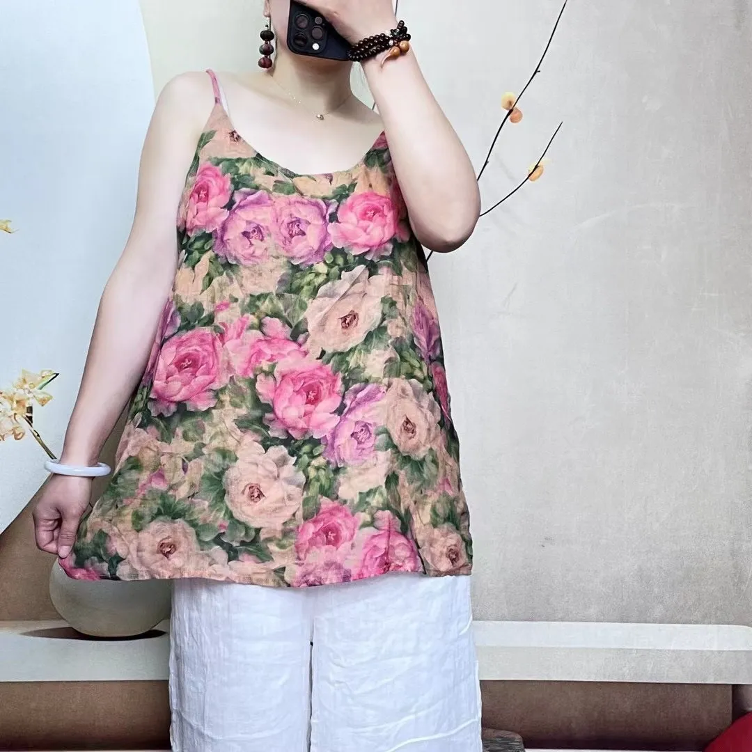 衣都精品- 新款復古數位印花休閒吊帶背心上衣