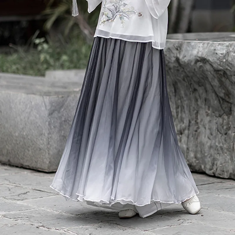 衣都精品- 新款民族風復古百褶一片式漸層印花馬面裙