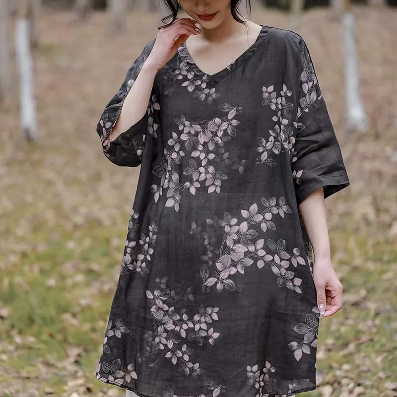 衣都精品- 新款民族風數位印花中長款寬鬆上衣