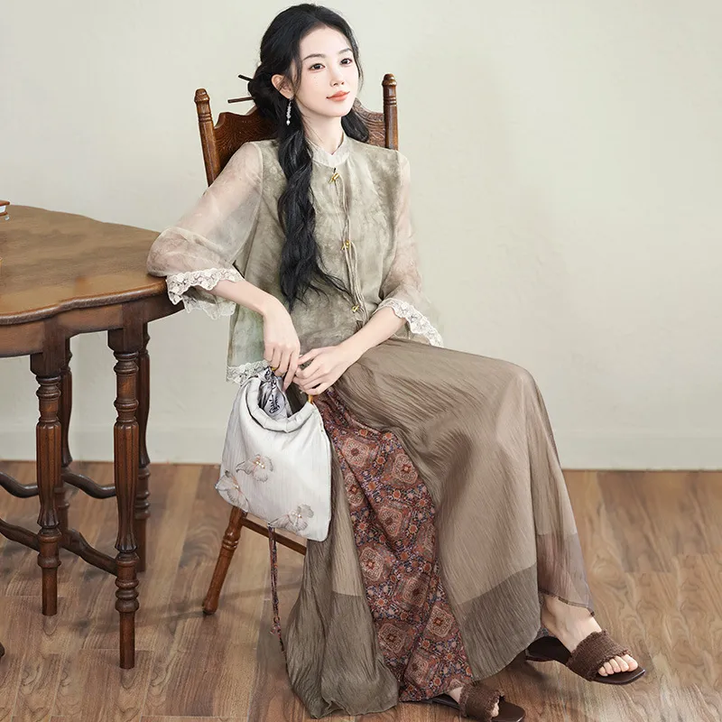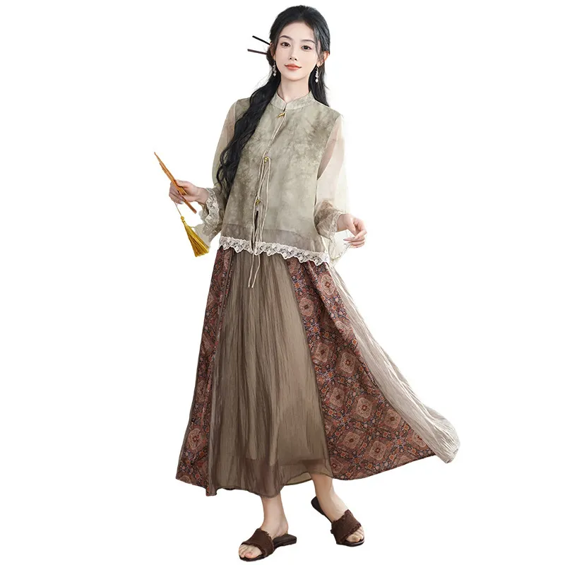 衣都精品- 新款復古漢服盤扣改良蕾絲長袖上衣