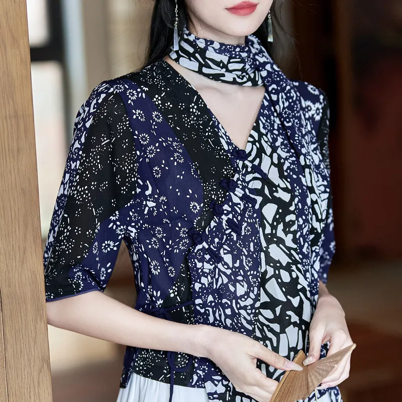 衣都精品- 新款中式國風改良復古斜襟繫帶絲巾